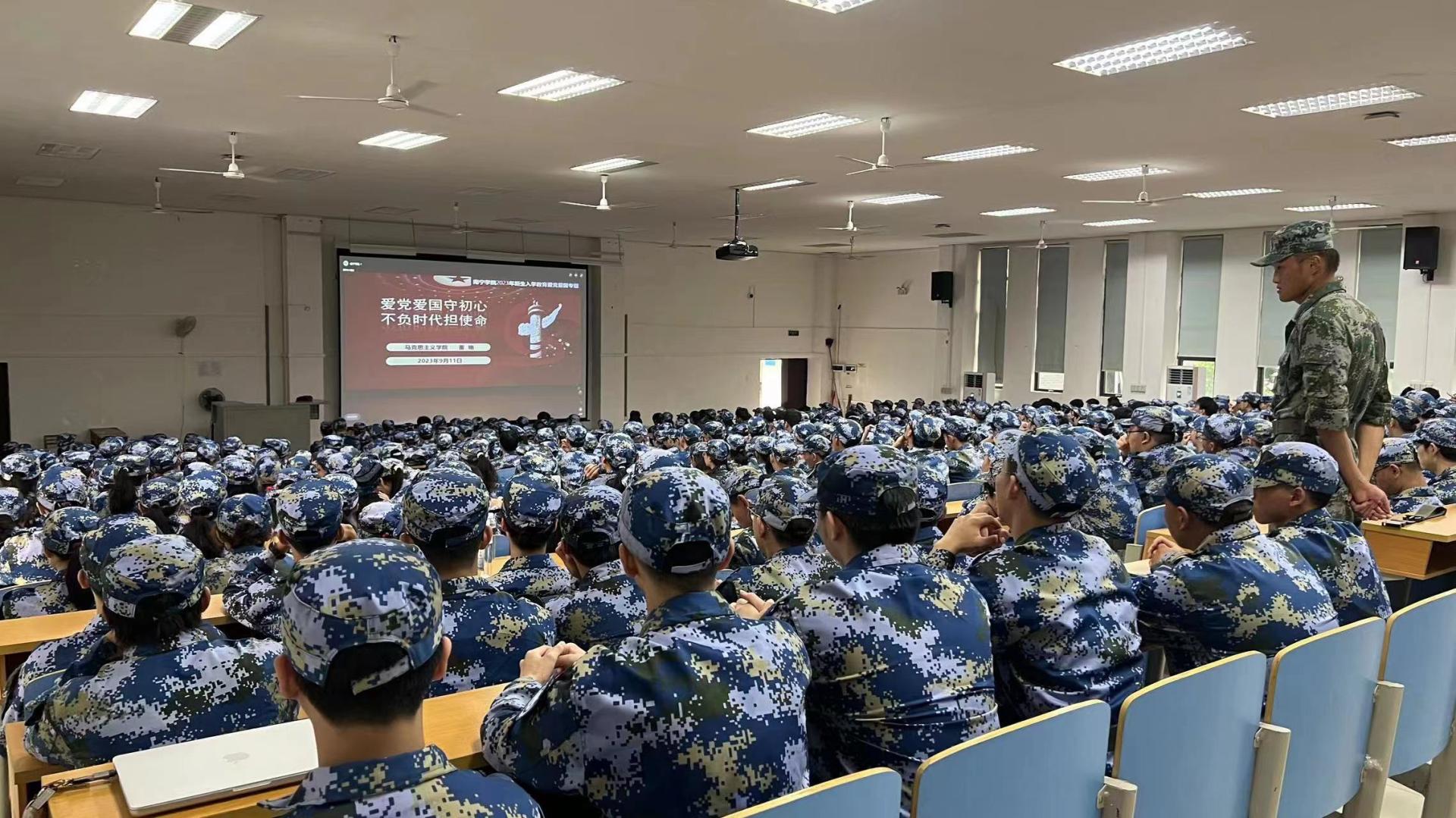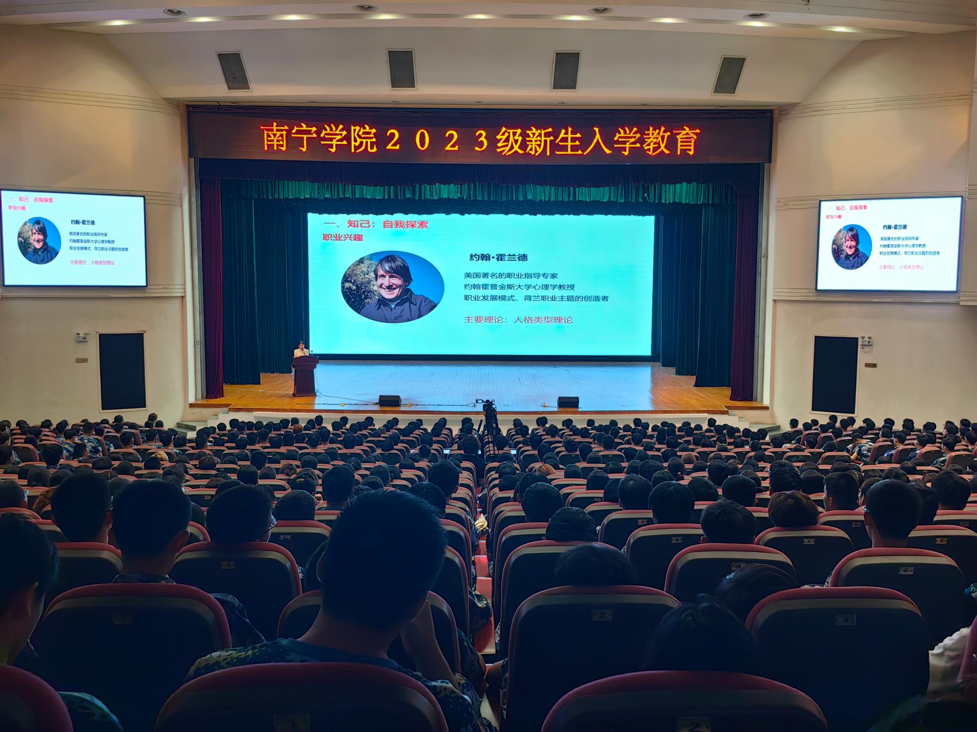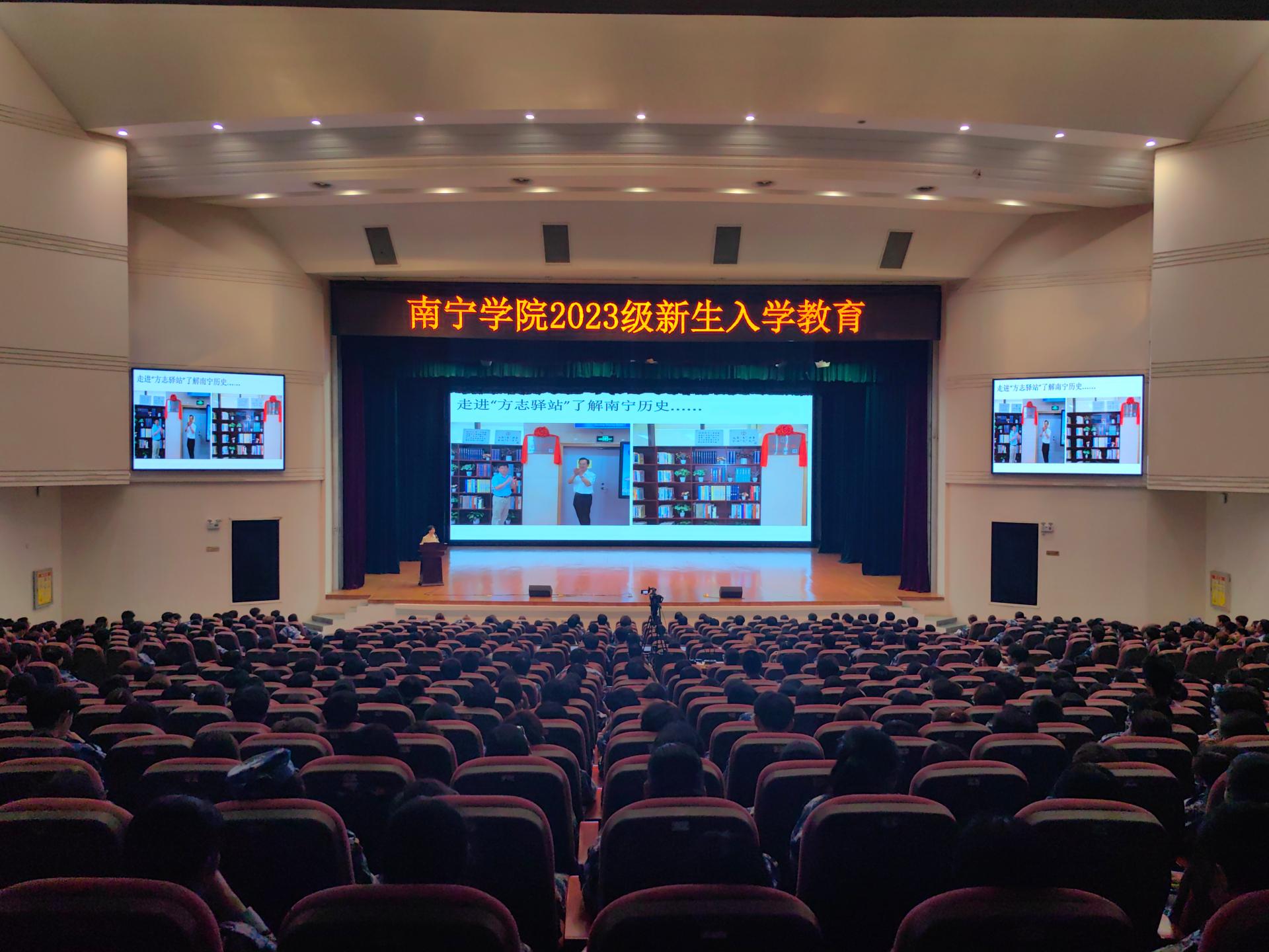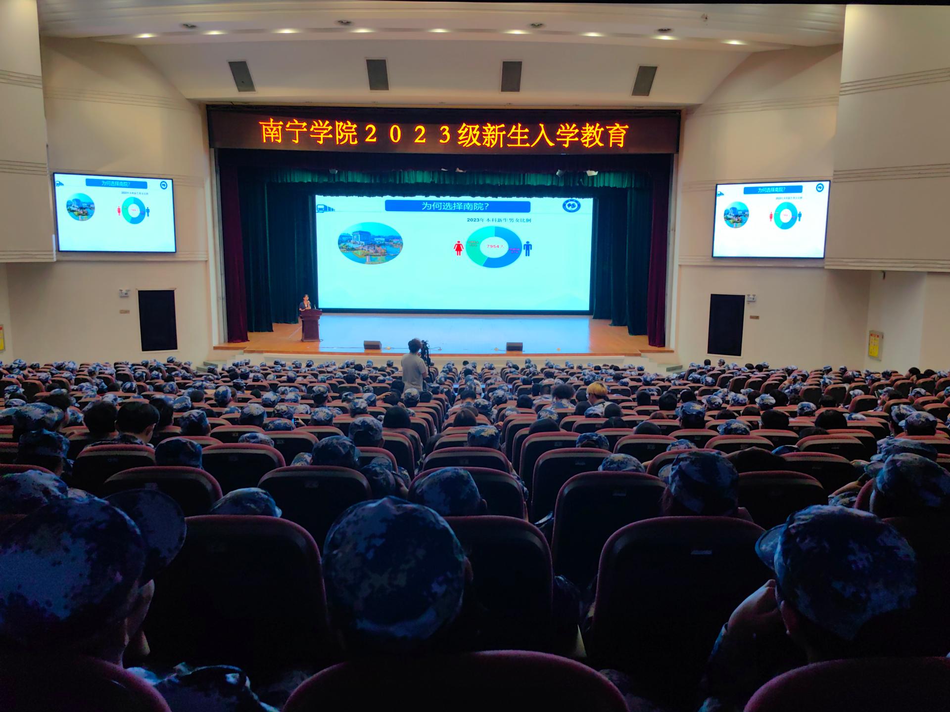 金秋送爽,丹桂飘香,南宁学院2023级新生怀揣着梦想开始了全新的校园生活。为切实做好2023级新生入学教育工作,加强新生思想政治教育,帮助新生学会科学规划学习和生活,提高心理健康素质,增强安全防护意识,顺利完成角色转变,系好大学的第一粒扣子。我校于9月11日-9月19日期间,开展2023级新生入学教育,讲座形式通过在演艺中心开展线下现场培训。同时,在图书馆报告厅、活动中心103、敷文园E104和体育馆等场所开展现场观看线上直播