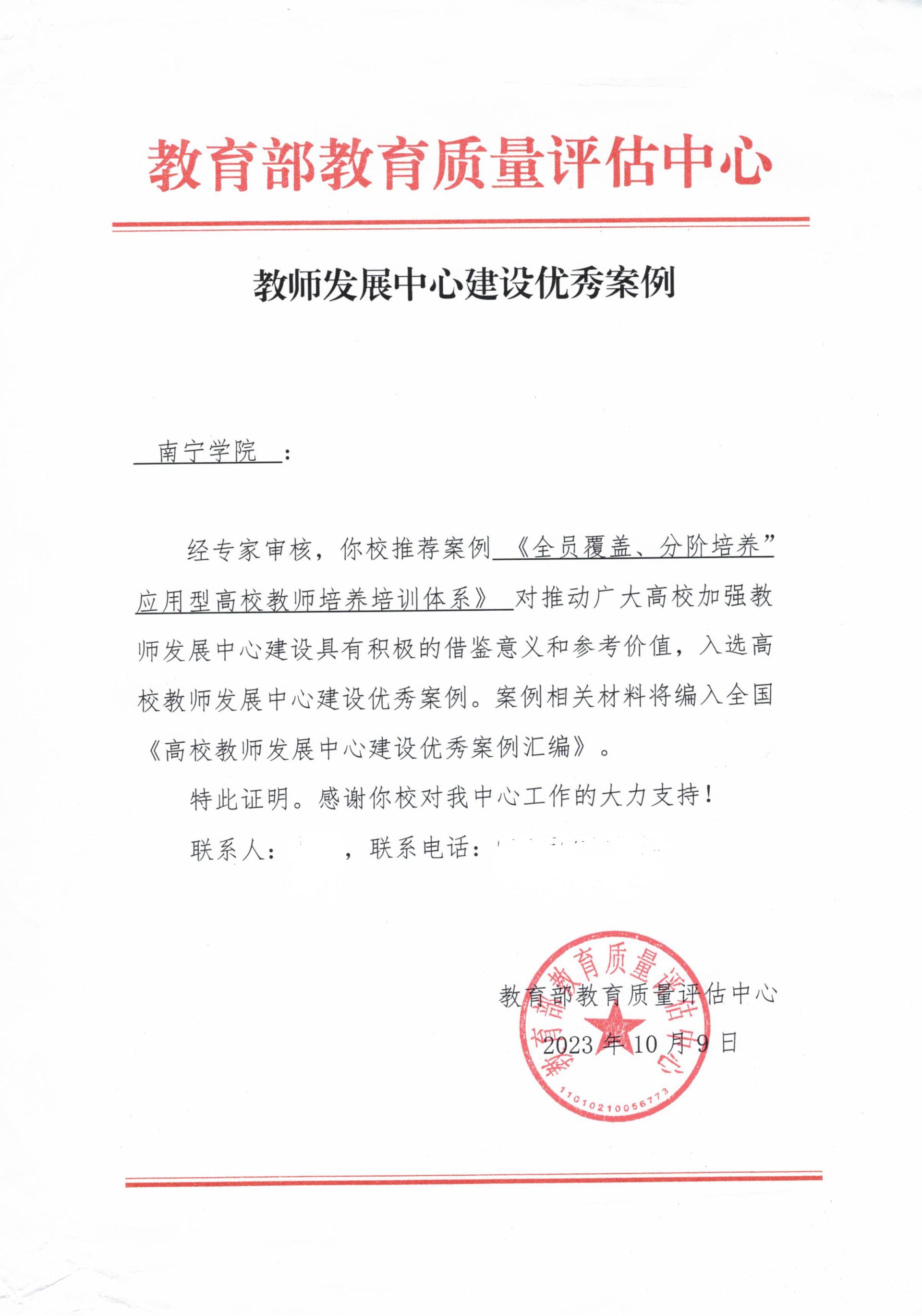 【喜报】南宁学院教师发展中心建设案例入选教育部优秀案例