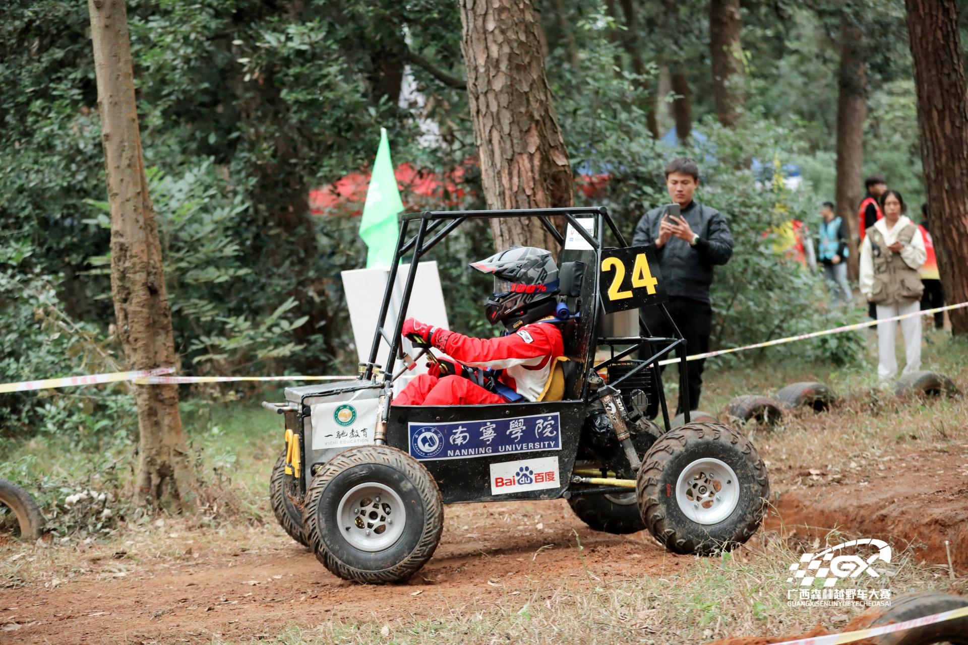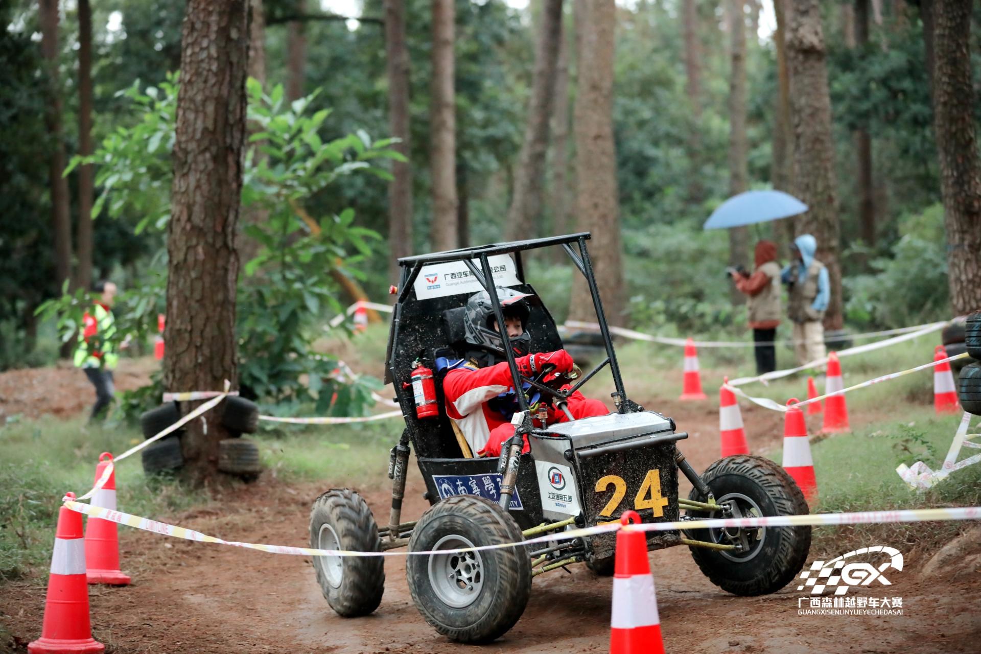 广西森林越野车大赛一项由高等院校、职业院校汽车及相关专业在校生组队参加的越野汽车设计、制造和检测的比赛。赛事由广西交通运输职业教育教学指导委员会主办,协办单位有:广西一驰教育科技有限公司、上汽通用五菱汽车股份有限公司、广西汽车集团有限公司、百度(中国)有限公司、中隽科技(武汉)有限公司、柳州市君武森林公园。参赛车队按照赛事规则和赛车制造标准,在规定时间,使用同一型号发动机,设计制造一辆单座、发动机中置的小型越野车。各车队在规定时间内进行各赛项比拼,比赛内容涵盖直线加速赛、耐久赛、单圈计时赛、爬坡赛、牵引赛、极限穿越赛、节油赛、森林操控赛等8个分项