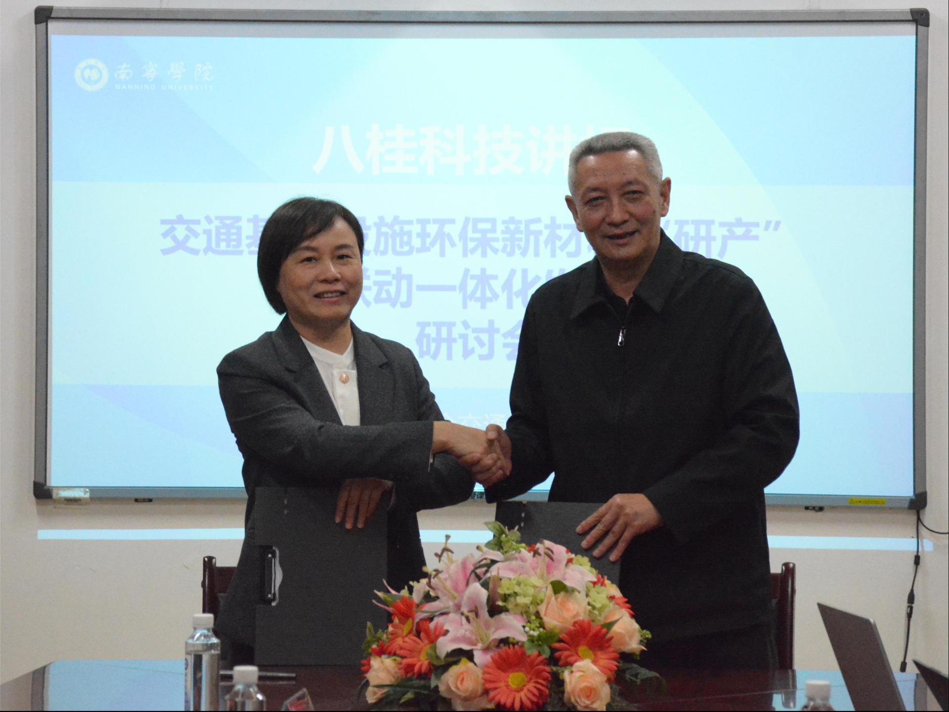 下午,广西中国-东盟综合交通国际联合重点实验室(以下简称“重点实验室”)与中交一公局第四工程有限公司于南硅谷E举行“新型环保材料研发中心”揭牌仪式,并召开交通基础设施环保新材料“研产”联动一体化发展研讨会。