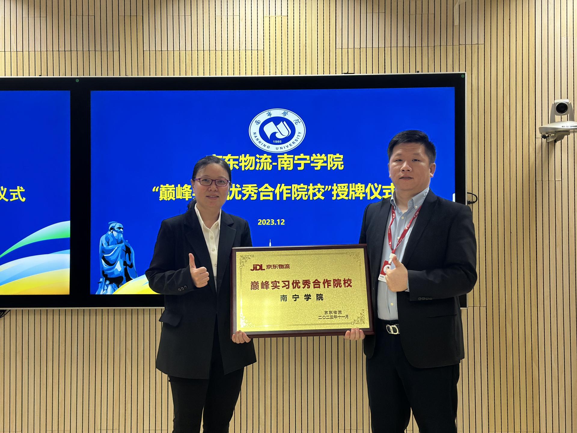 京东物流授予南宁学院“巅峰实习优秀合作院校”荣誉