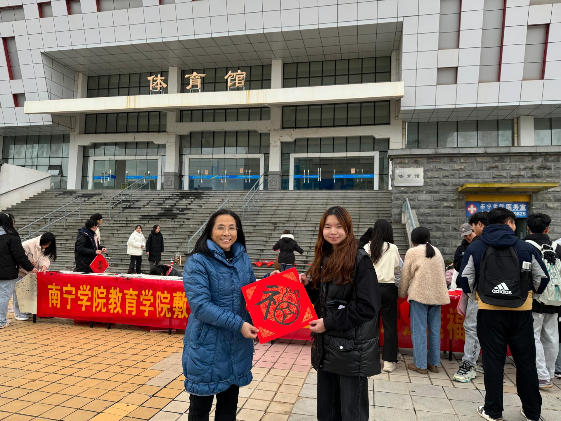 同学们给教育学院党总支书记黄瓅送福字