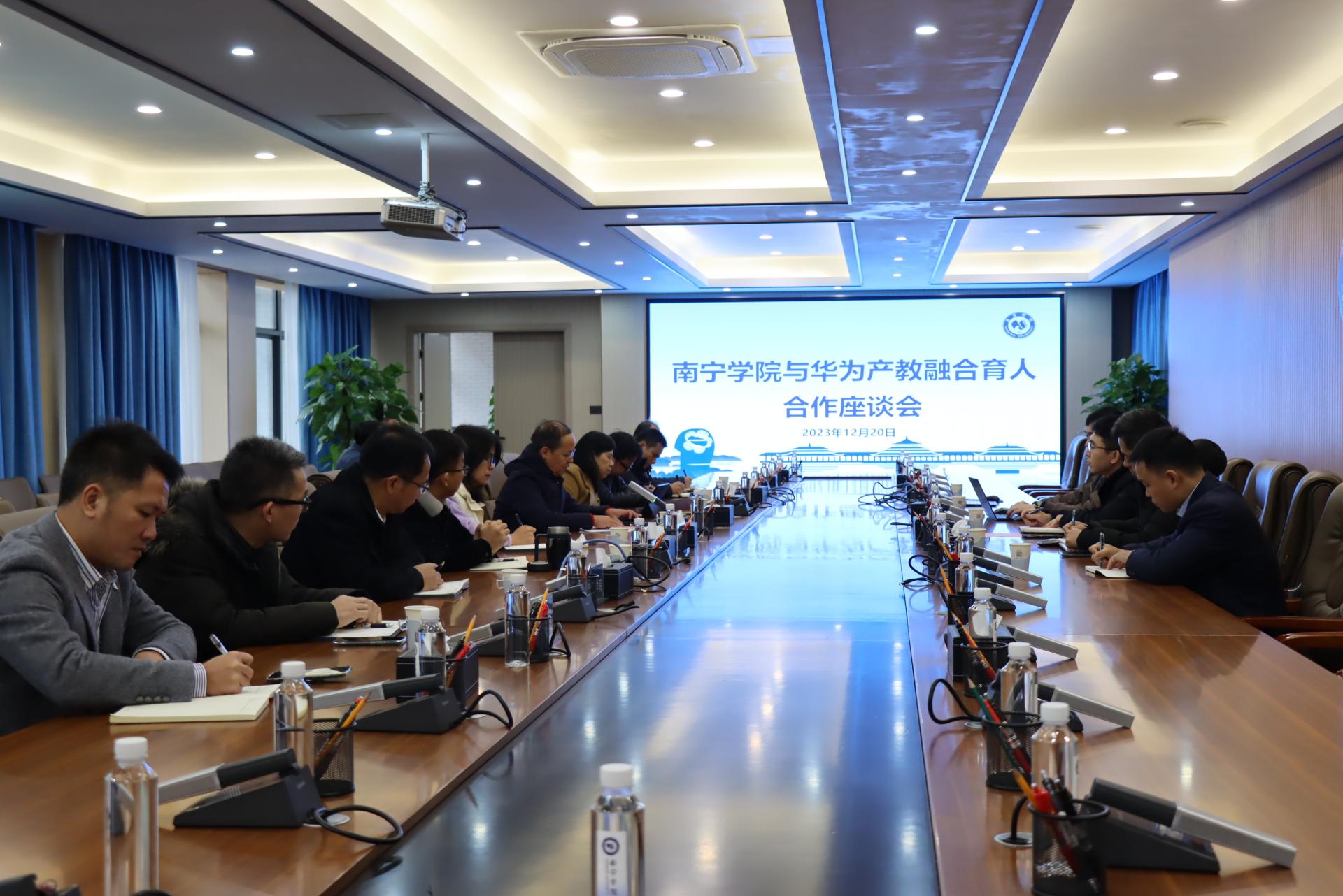 12月20日上午,华为广西政企商业业务部总经理何东岷一行4人来我校洽谈产教融合育人合作事宜。我校副校长陈雄章主持座谈会。