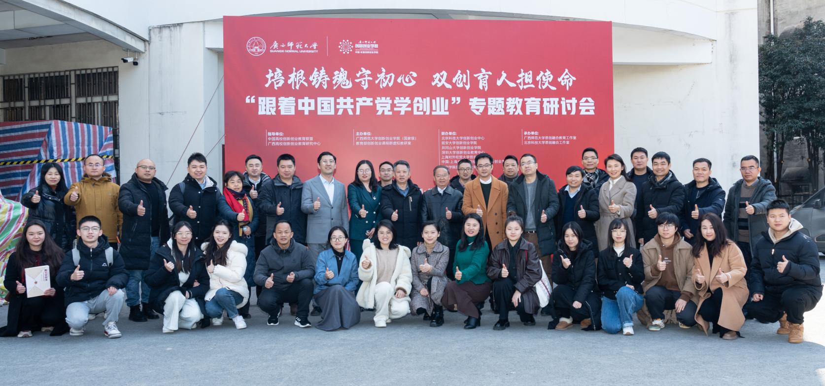 为努力从中国共产党的百年发展史中汲取奋斗智慧和力量,推动创新创业教育高质量发展以及引领青年创业跟党走,12月23日,以“培根铸魂守初心、双创育人担使命”为主题的“跟着中国共产党学创业”专题教育研讨会在广西师范大学顺利举行。本次研讨会由中国高校创新创业教育联盟、广西高校创新创业教育研究中心指导;广西师范大学创新创业学院(国家级)、教育部创新创业课程群虚拟教研室主办;北京科技大学创新创业中心、延安大学创新创业学院、井冈山大学创新创业学院、深圳大学创新创业教育中心、上海对外经贸大学创新创业学院、中国-上海合作组织经贸学院创新创业学院、南宁学院创新创业教育学院联办。共有来自区内外20多所高校双创学院专家学者,及学校党委组织部、学工部(处)、校团委、国际交流处、马克思主义学院、经济管理学院、政治与公共管理学院等职能部门和二级学院领导参加了研讨会。