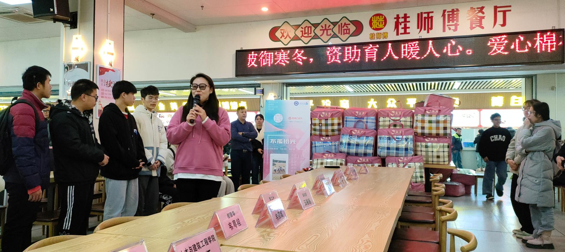 学工处王静静处长和田爽副处长为同学们发放暖心大礼包