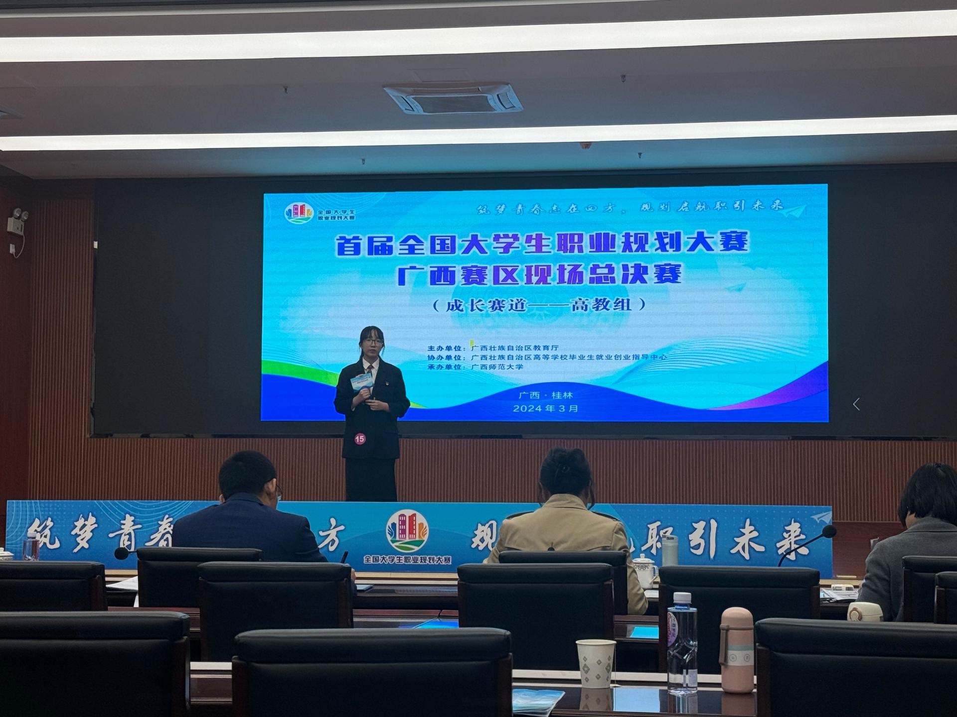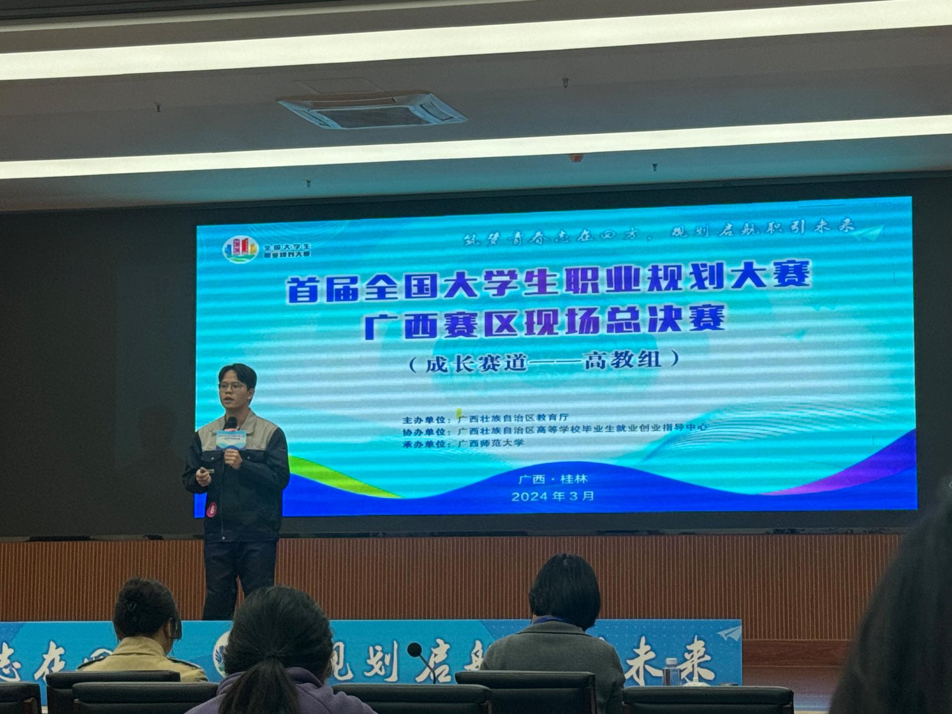 此次大赛由广西壮族自治区教育厅主办,广西壮族自治区高等学校毕业生就业创业指导中心协办,广西师范大学承办。现场总决赛共有37所高等院校的81位选手分别入围就业赛道、成长赛道的高教组、职教组,我校4名选手在高教组别的就业赛道、成长赛道展开激烈角逐。