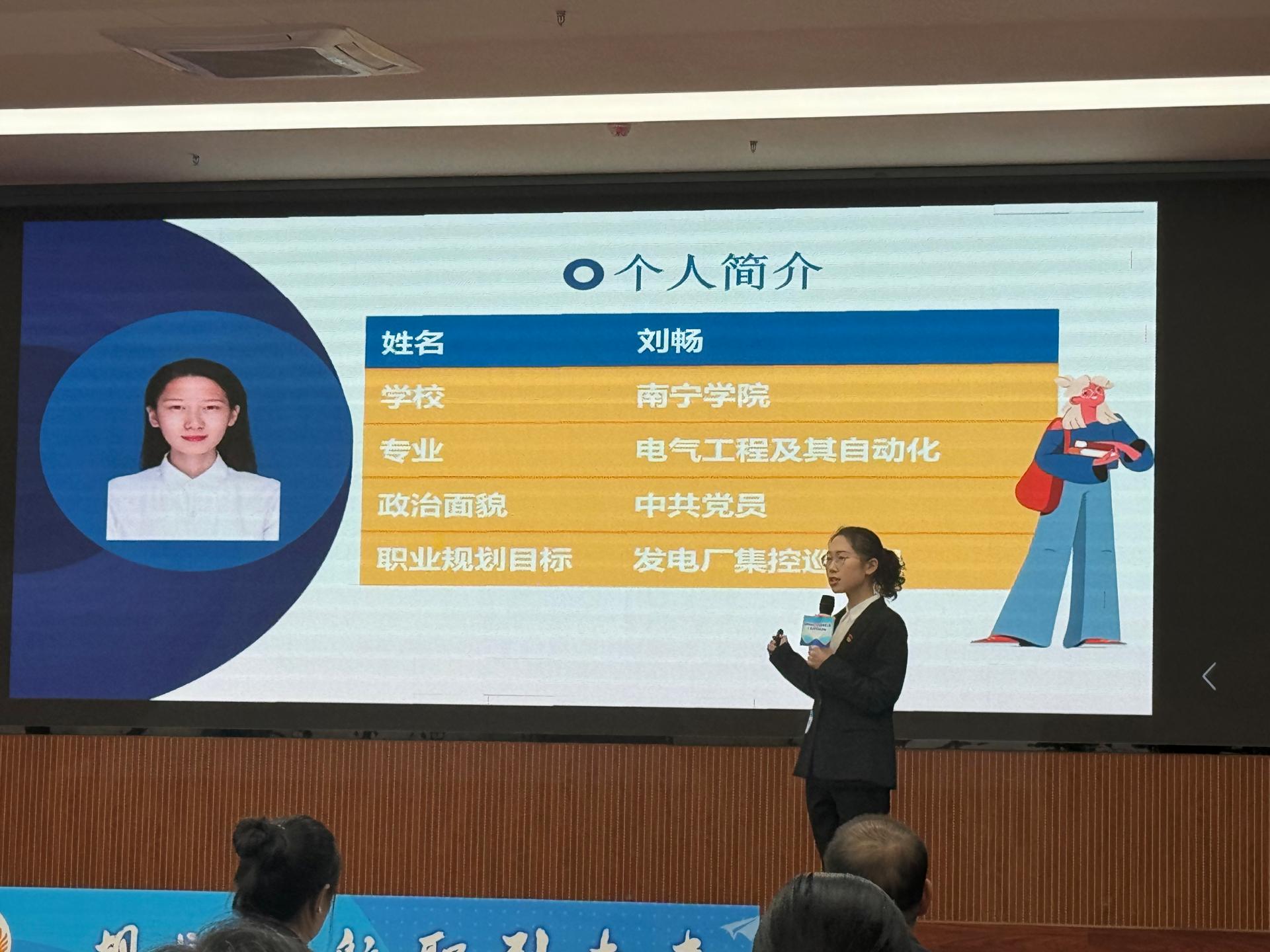 智能制造学院学生刘畅通过陈述生涯发展报告,展示了在成为发电厂集控巡检员路上的付出和积累,对评委的提问作出了精彩的回答,以就业赛道“生产服务”分赛道第三名的成绩获金奖三等奖。