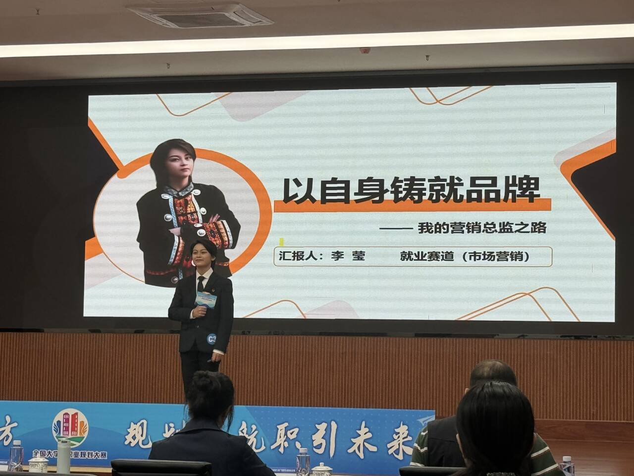 商学院学生李莹展示了自己成为营销总监所付出的努力和汗水,以高水平的专业技能和职业素养,赢得了专家评委的阵阵掌声,以就业赛道“市场营销”分赛道第二名的成绩获金奖二等奖。