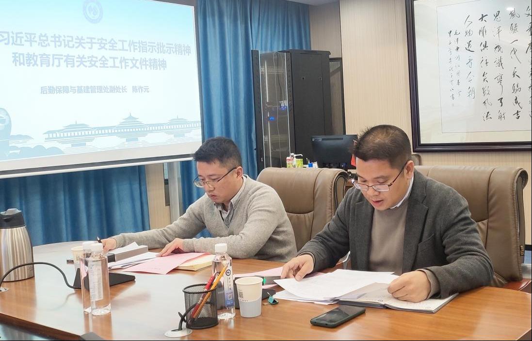 会议第二项议程是由后勤保障与基建管理处副处长刘波传达《自治区教育厅关于印发2024年度高等学校安全工作责任制责任清单的通知》(桂教安稳〔2024〕7号)以及《广西壮族自治区安全生产委员会办公室关于印发<全区安全生产治本攻坚三年行动实施方案(2024-2026)>子方案的通知》(桂教安稳〔2024〕7号),对学校开展安全生产攻坚三年行动进行了布置。