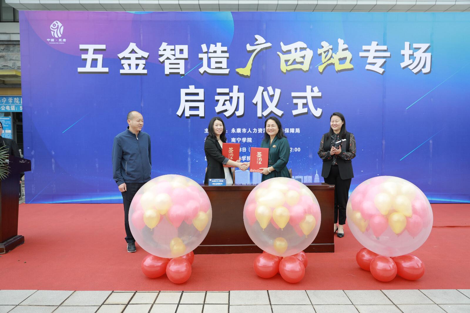 本次招聘会是浙江省永康市人力资源和社会保障局与南宁学院共同组织,由食品与质量工程学院和艺术与设计学院共同承办。南宁学院党委副书记韦粤桂,学生工作处处长王静静,各二级学院党委副书记,浙江省金华市、永康市人力资源和社会保障局代表出席招聘会启动仪式。