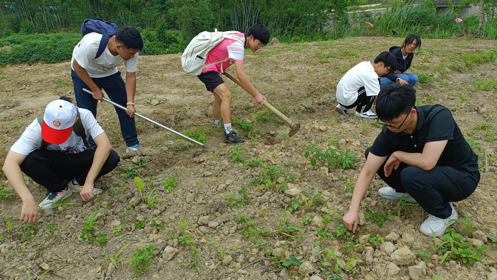 随后,参加研学活动的师生分成两组,一组走家进户宣传国家和学校资助政策以及乡风文明政策。在村委工作人员带领下,师生挨家挨户耐心讲解,特别是针对留守老人,师生耐心热情宣传煤气、用电安全意识和防诈宣传,并举例说明情况,尽量让留守老人简单易懂,进而了解和掌握,在日常生活中增强安全防范意识。另外一组则到田间体验为农作物除草。很多同学是第一次实地体验田间劳作,走在前往目的地的村间小道上不断想象干农活的场景,非常兴奋。到达目的地后,村干部给同学们简单讲解除草要求,同学们立即兵分五路,向“目标”进攻。大家在除草过程中,虽然汗流浃背,但欢声笑语不断,感受劳动的快乐。
