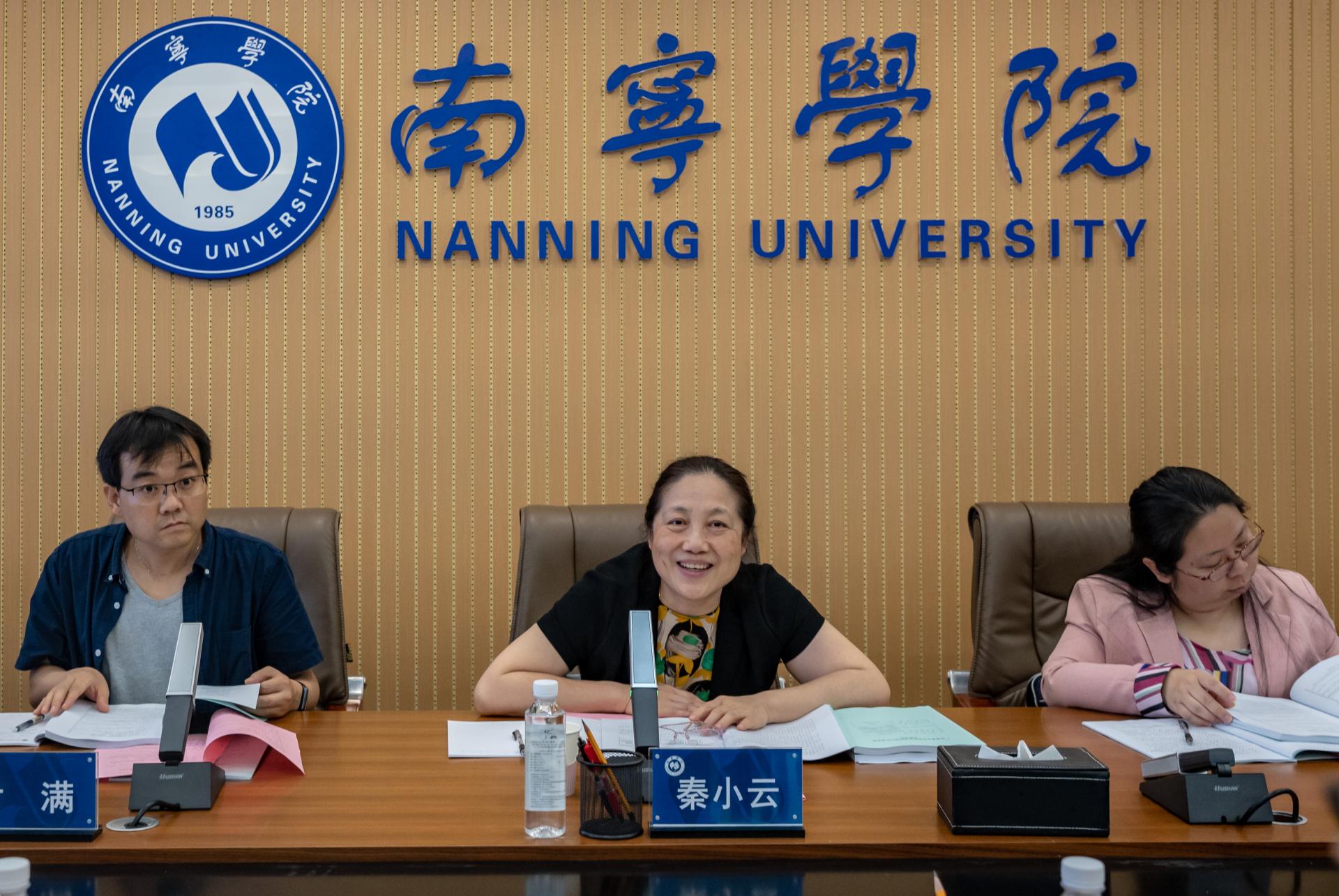 会上,评估专家组组长、广西科技大学副校长秦小云介绍专家组成员,对现场评估流程、评估任务等提出工作要求。