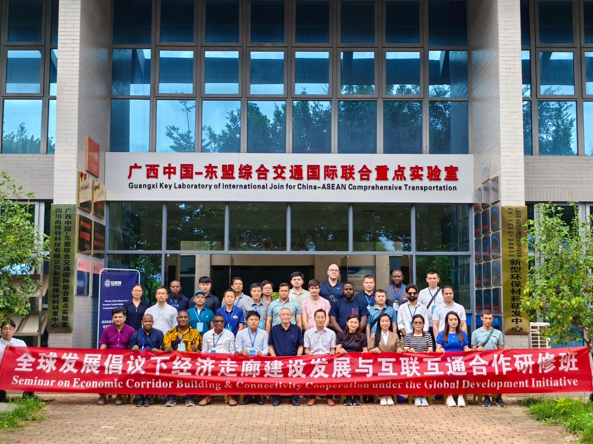 5月20日,由中华人民共和国商务部主办、西南交通大学承办、南宁学院交通运输学院和广西中国-东盟综合交通国际联合重点实验室(以下简称“重点实验室”)协办的“全球发展倡议下经济走廊建设发展与互联互通合作研修班”在我校圆满完成培训工作任务。来自老挝、拉脱维亚、马来西亚、巴基斯坦、阿塞拜疆等12个国家的29名官员参与。
