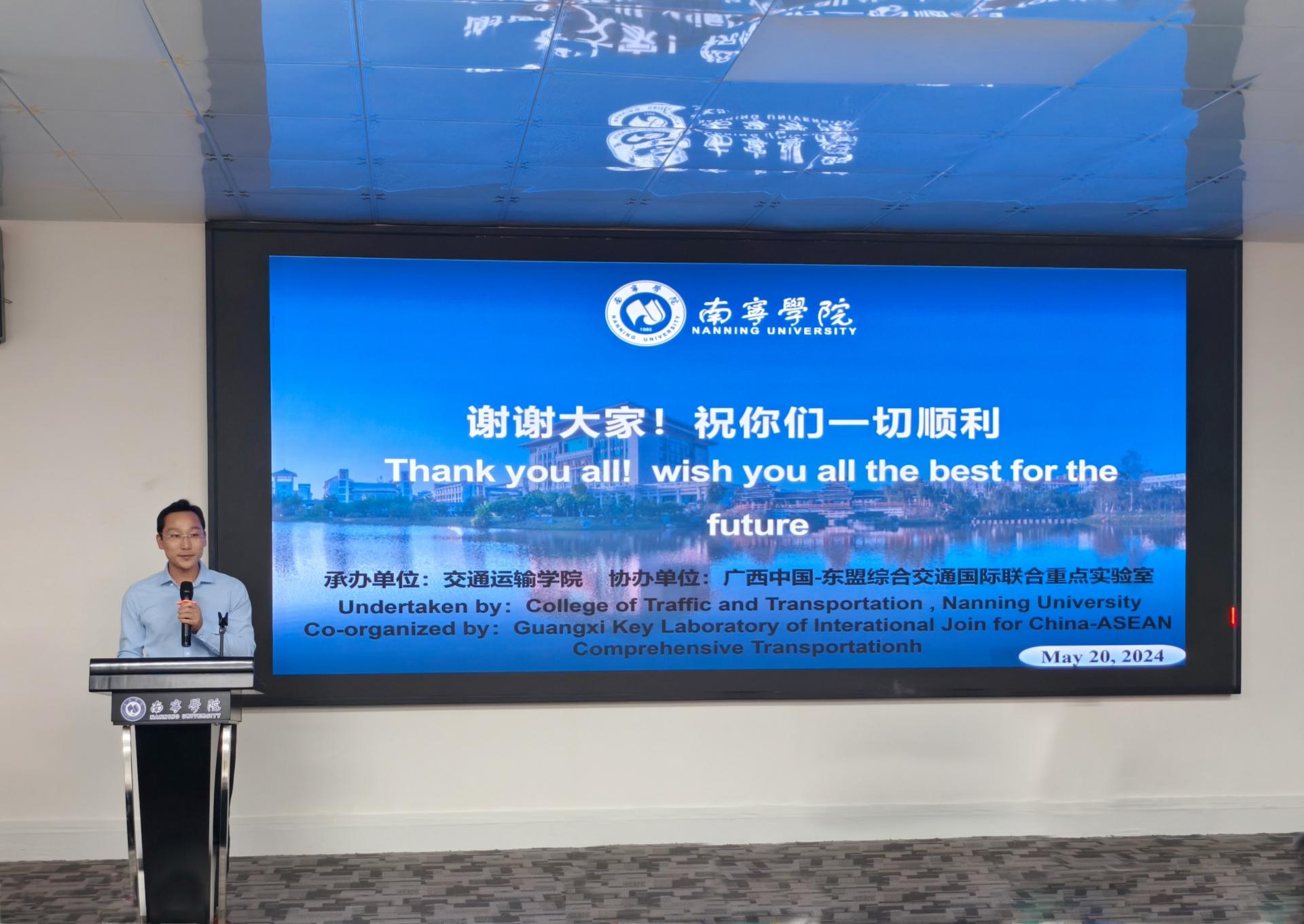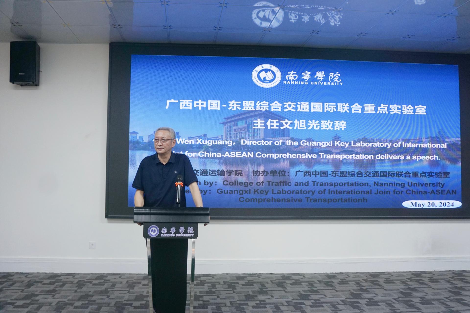图4 广西中国-东盟综合交通国际联合重点实验室主任文旭光教授致欢迎词