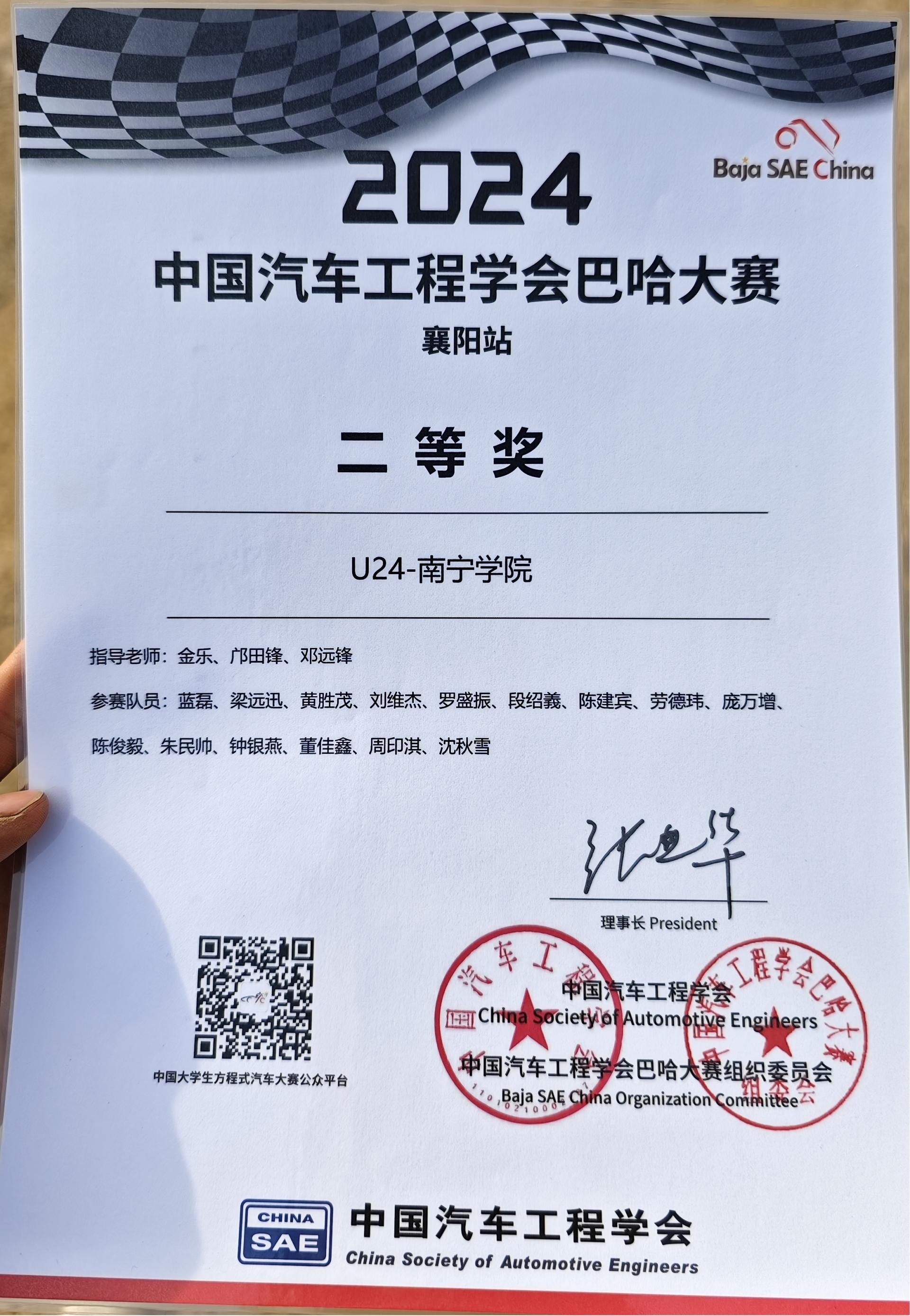 【喜讯】南宁学院获2024中国汽车工程学会巴哈大赛国赛二等奖