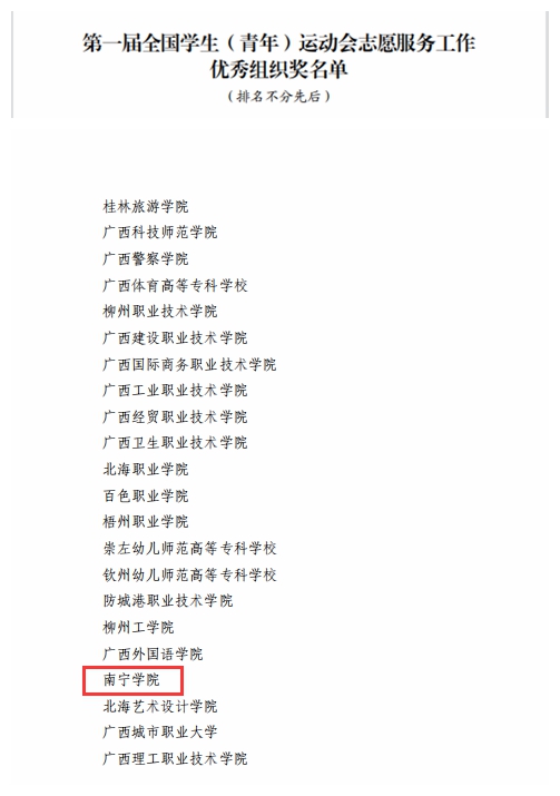 【喜报】南宁学院荣获学青会志愿服务工作优秀组织奖