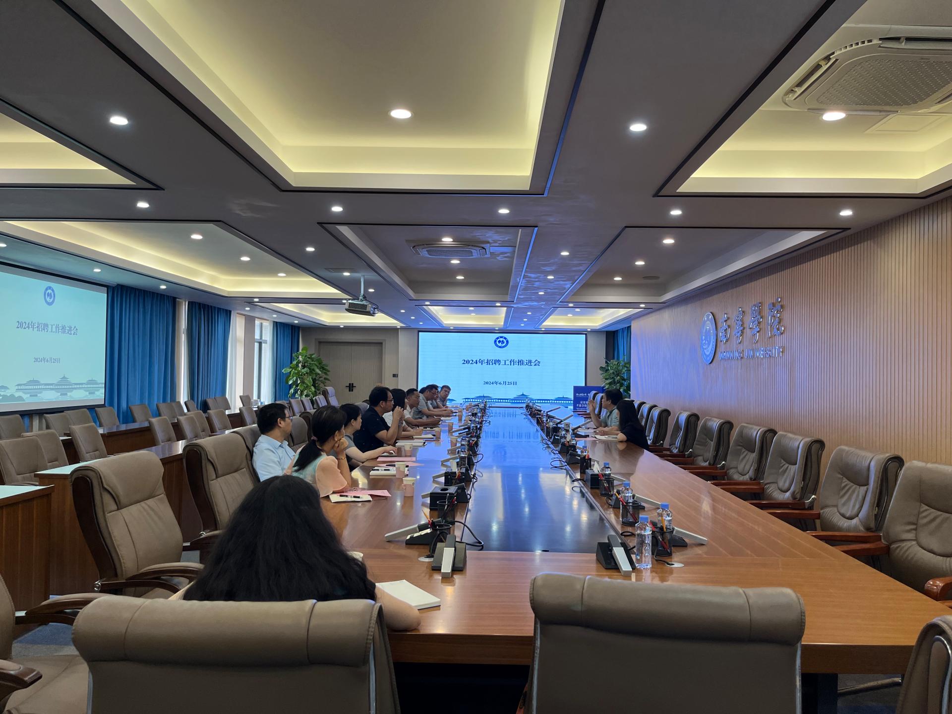 6月25日,学校在行政楼400会议室召开2024年招聘工作推进会,副校长王宁章出席并讲话,各二级学院负责人参加会议,会议由人事处处长赵田英主持。