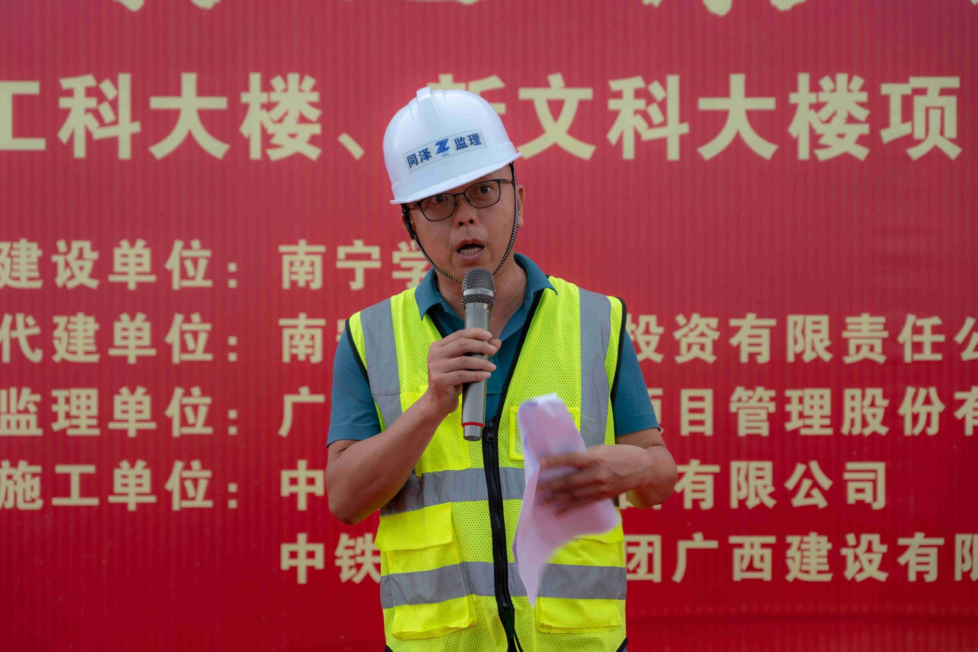 随后,项目代建单位、监理单位以及施工单位相关负责人相继作表态发言。他们一致表示,将以新工科大楼、新文科大楼项目主体结构封顶为新起点,压紧压实责任,落实落细措施,通力协作,合力推进,确保项目如期竣工并顺利交付使用。