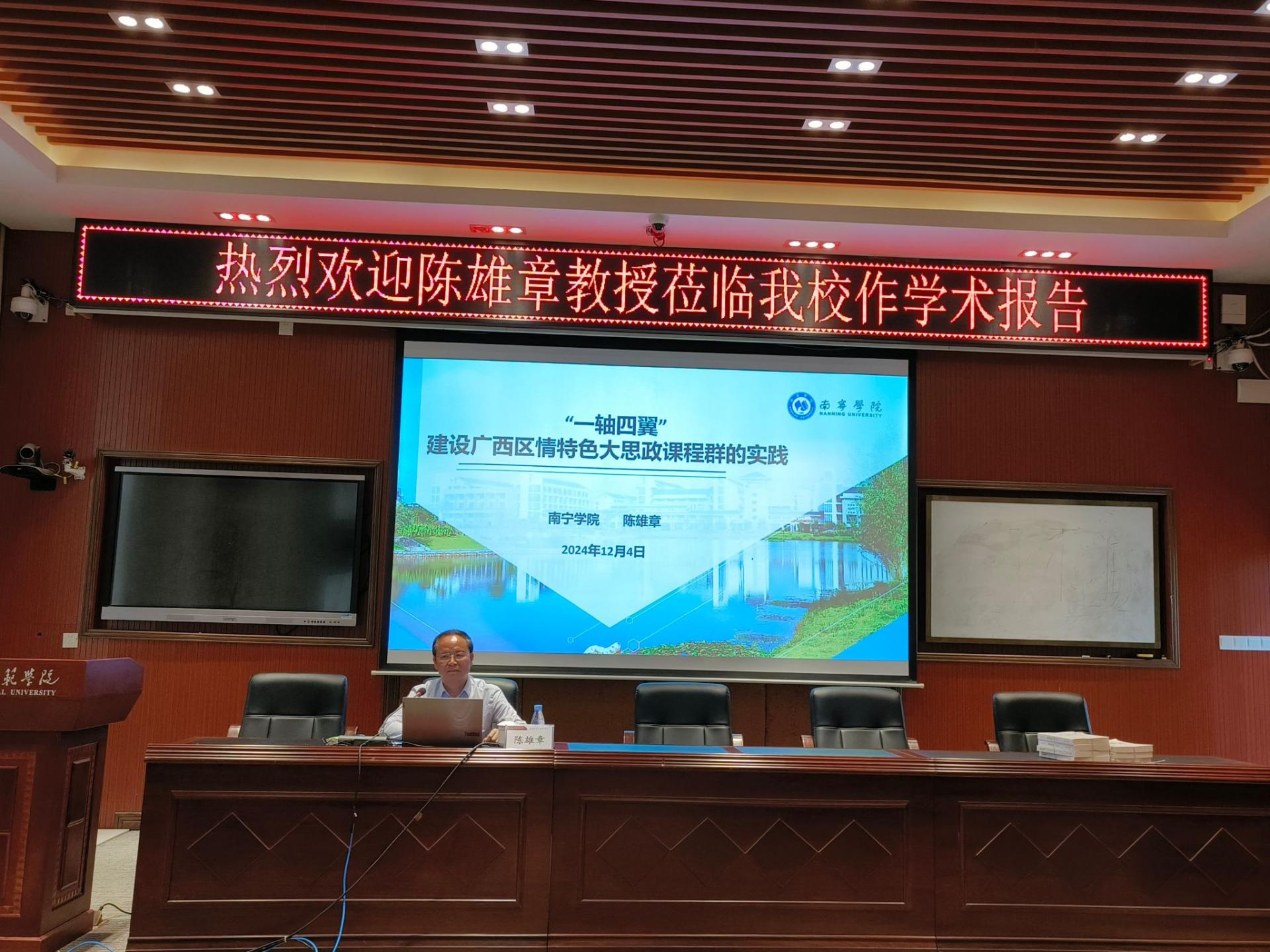 陈雄章副校长应邀赴广西民族师范学院作“‘一轴四翼’”建设广西区情特色大思政课程群的实践”学术讲座