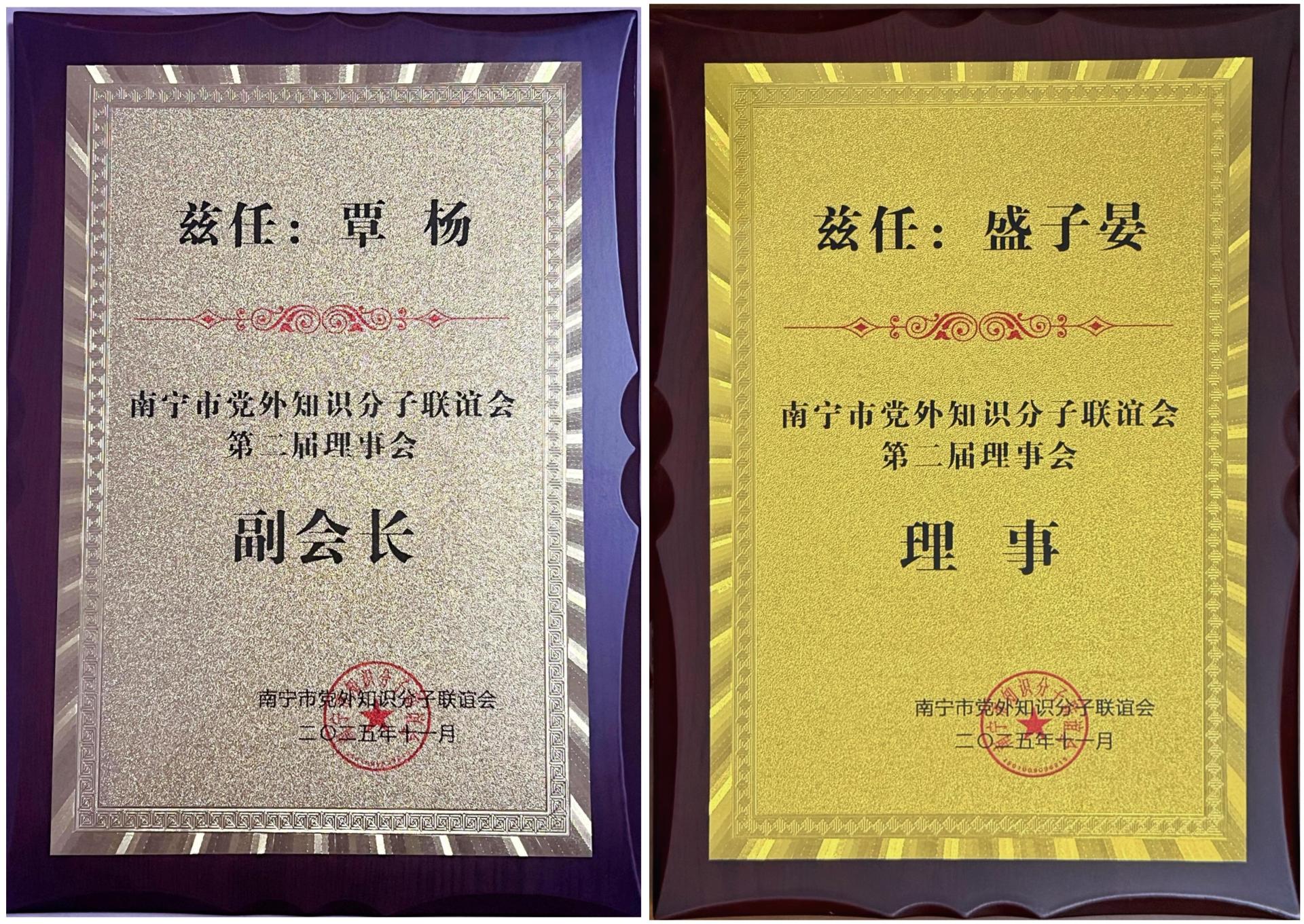 我校覃杨老师和盛子晏老师分别当选南宁市党外知识分子联谊会第二届理事会副会长、理事