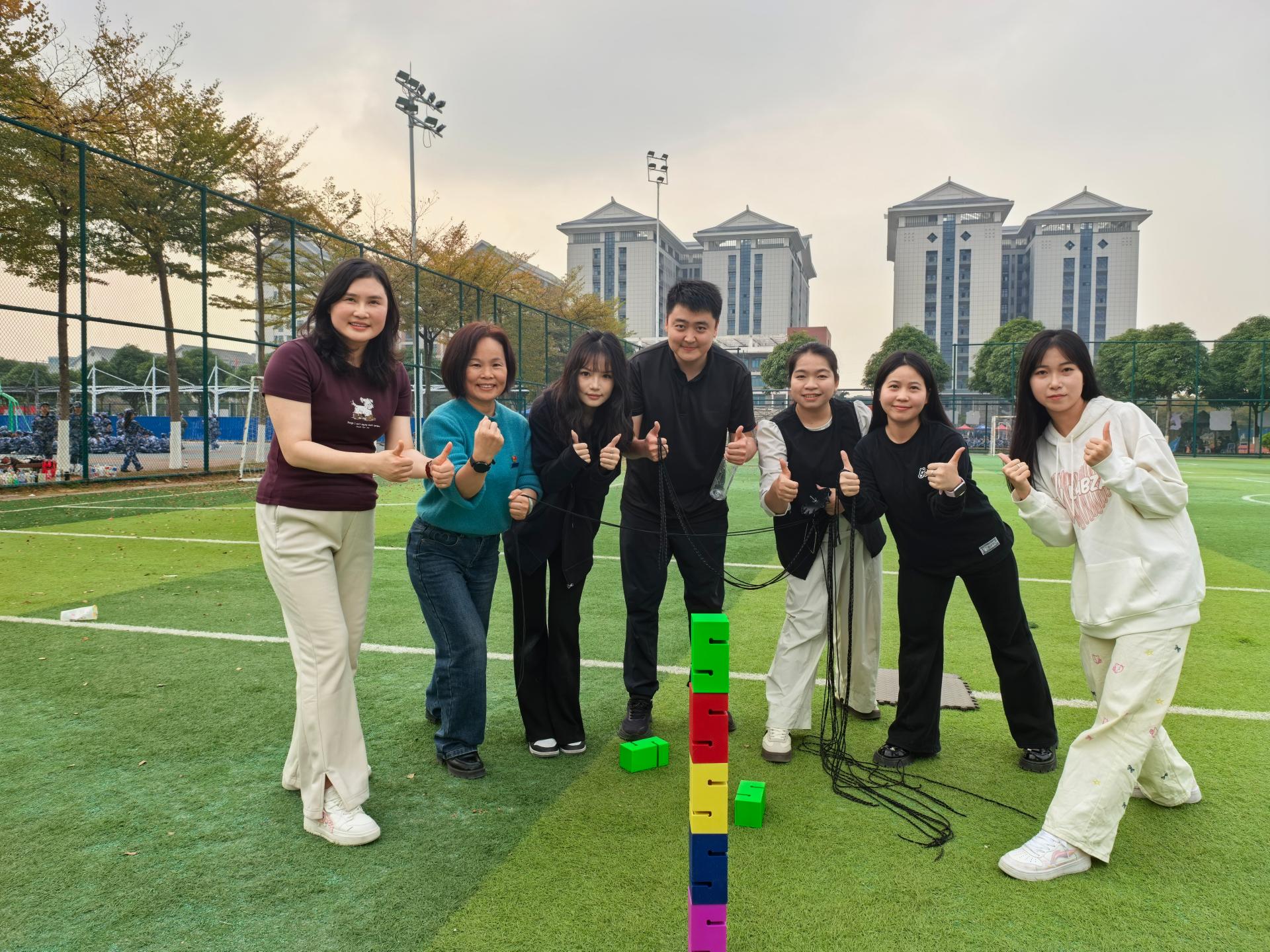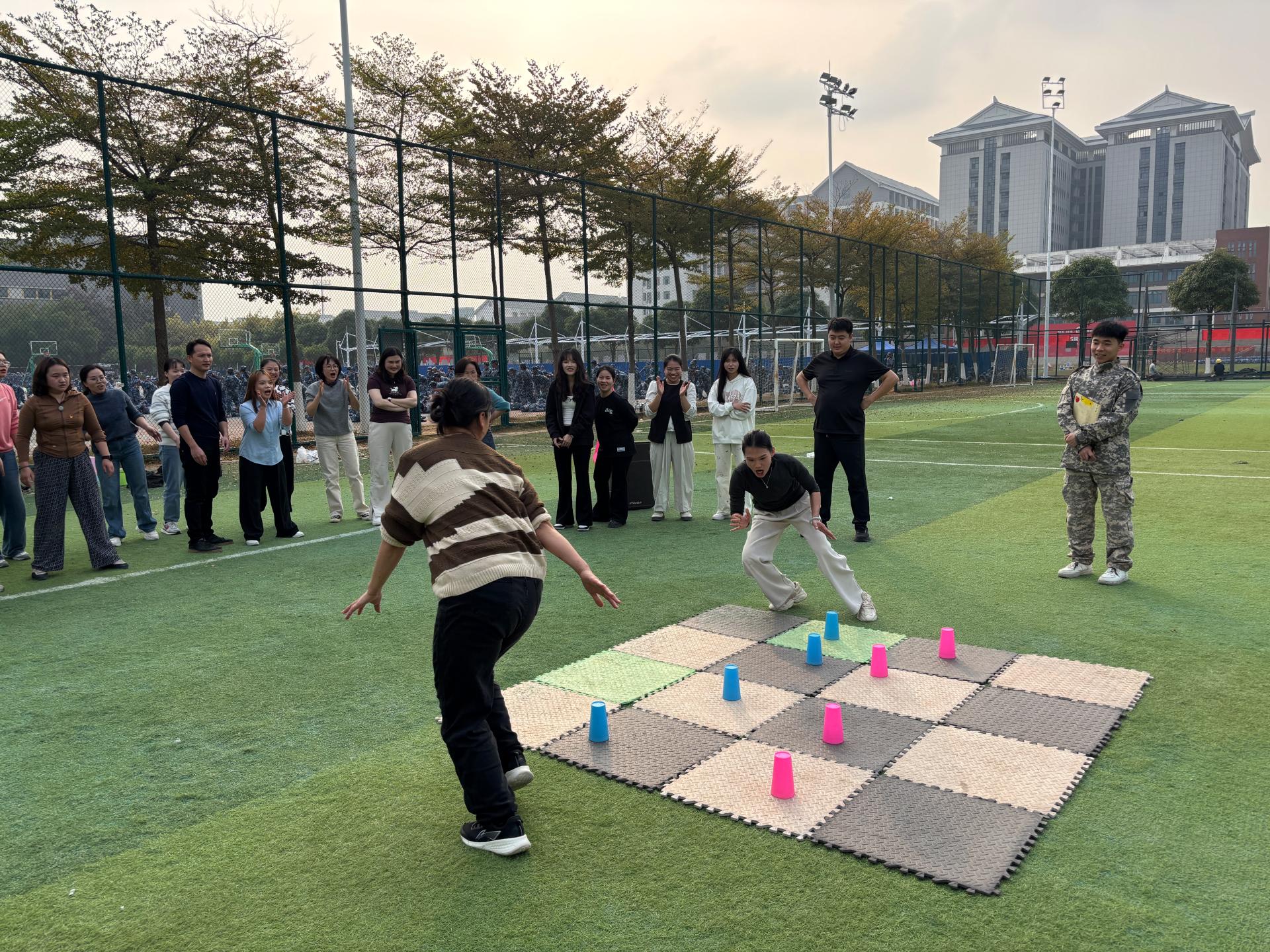 15:30,足球场切换“实践模式”。参观学习后,全体人员移步至足球场,开展别开生面的团建环节活动。大家在热身小游戏后随机分为4支混合战队依次挑战“合力建塔”“地宫宝藏”“卓越未来”的三大项目。项目设计强制跨部门、跨企业组队,活动现场气氛热烈,欢声笑语此起彼伏,各战队齐心协力、默契配合,展现出“目标一致、分工协作”的合作精神。经过专注、激烈而友好地挑战后,各战队按所得积分现场领取了奖励。通过团建活动环节,不仅锻炼了大家的身体素质和心理韧性,还在互动中强化了跨部门、跨单位的沟通与协作,进一步拉近了党员、教职工与合作办学单位员工之间的距离,为今后的党建引领校企协同育人工作奠定了良好基础。