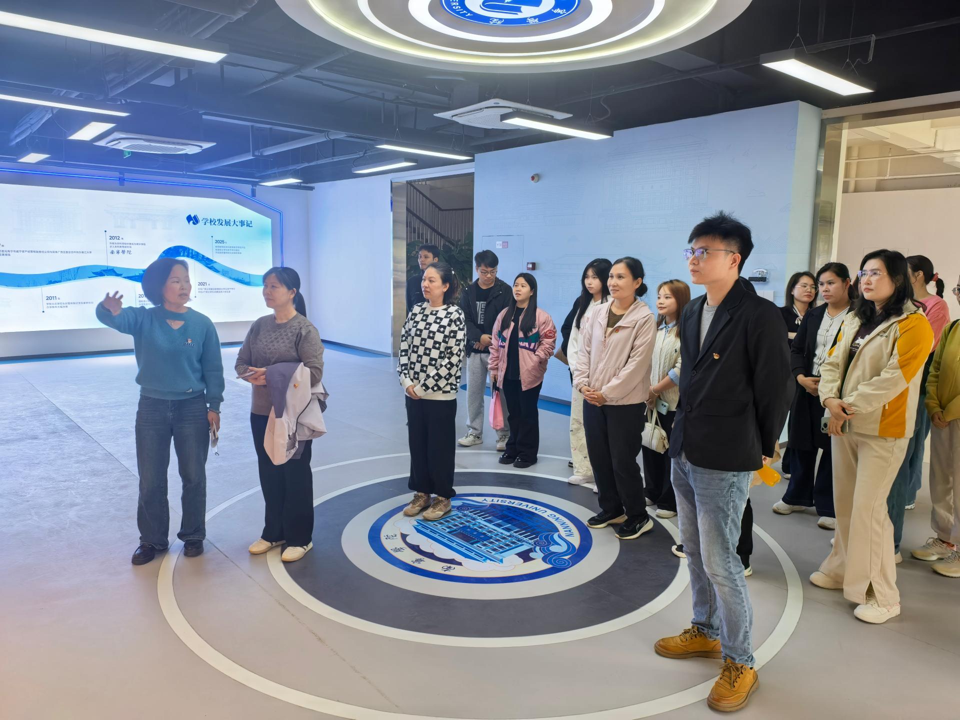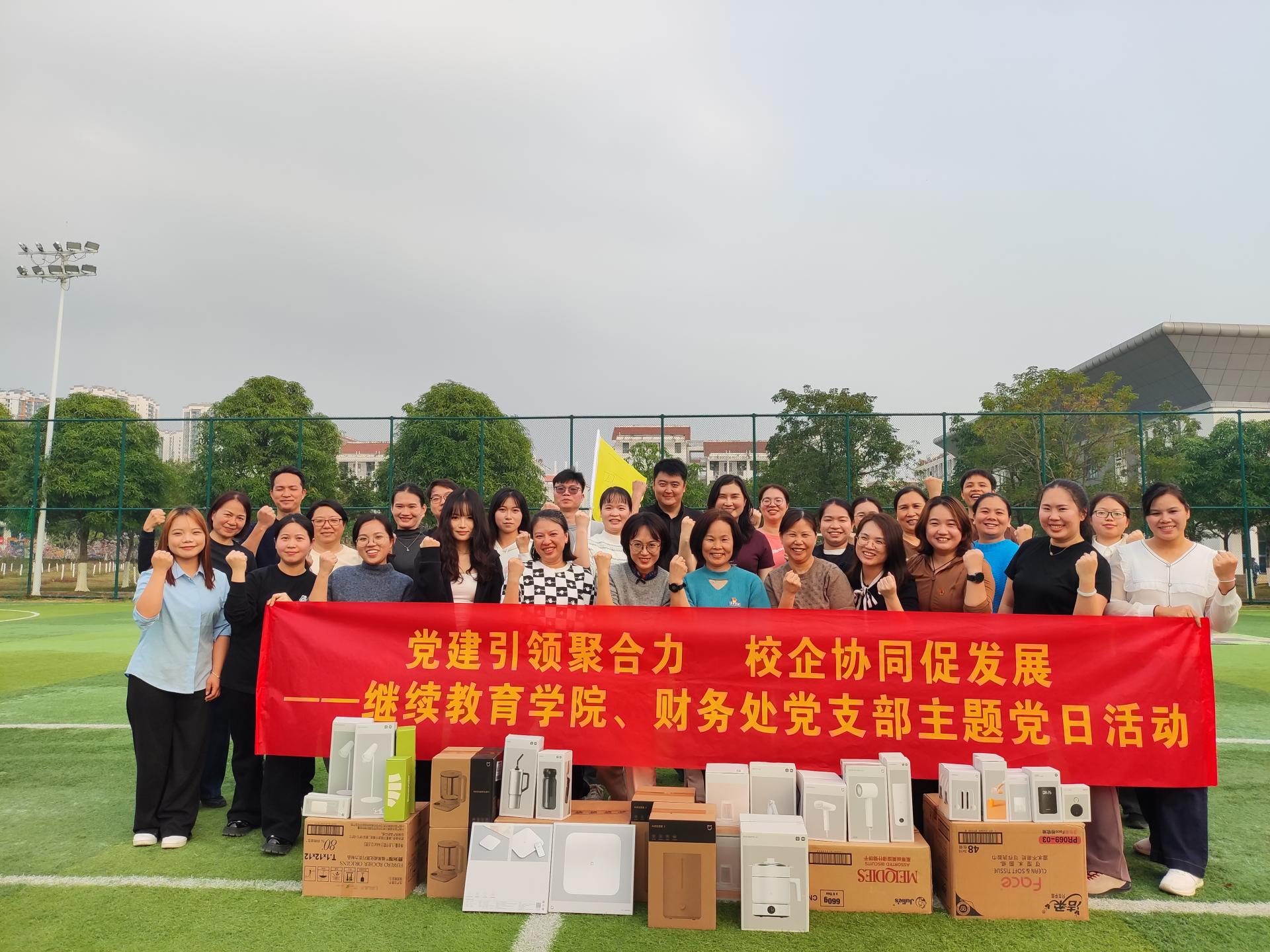 2026年1月17日下午,继续教育学院党支部与财务处党支部携手广西红河谷教育咨询有限公司开展“党建引领聚合力,校企协同促发展”主题党日活动。党员、教职工及企业代表共34人在学校校史馆、足球场举行了一场“沉浸式校史课+实战团建”的双线融合活动,为学校新一年校企协同育人先行垫实“黏合剂”。