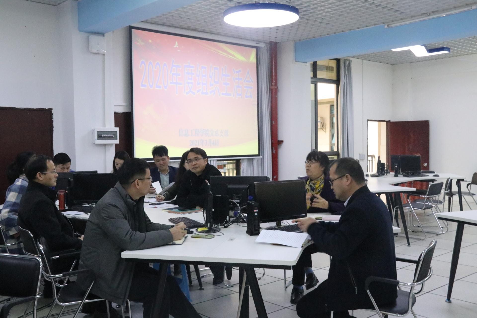 3月4日下午,信息工程学院党总支在南硅谷A201召开了2020年度组织生活会,学院党总支委员、全体教工党员参会。会议由学院党总支副书记邓斌主持。