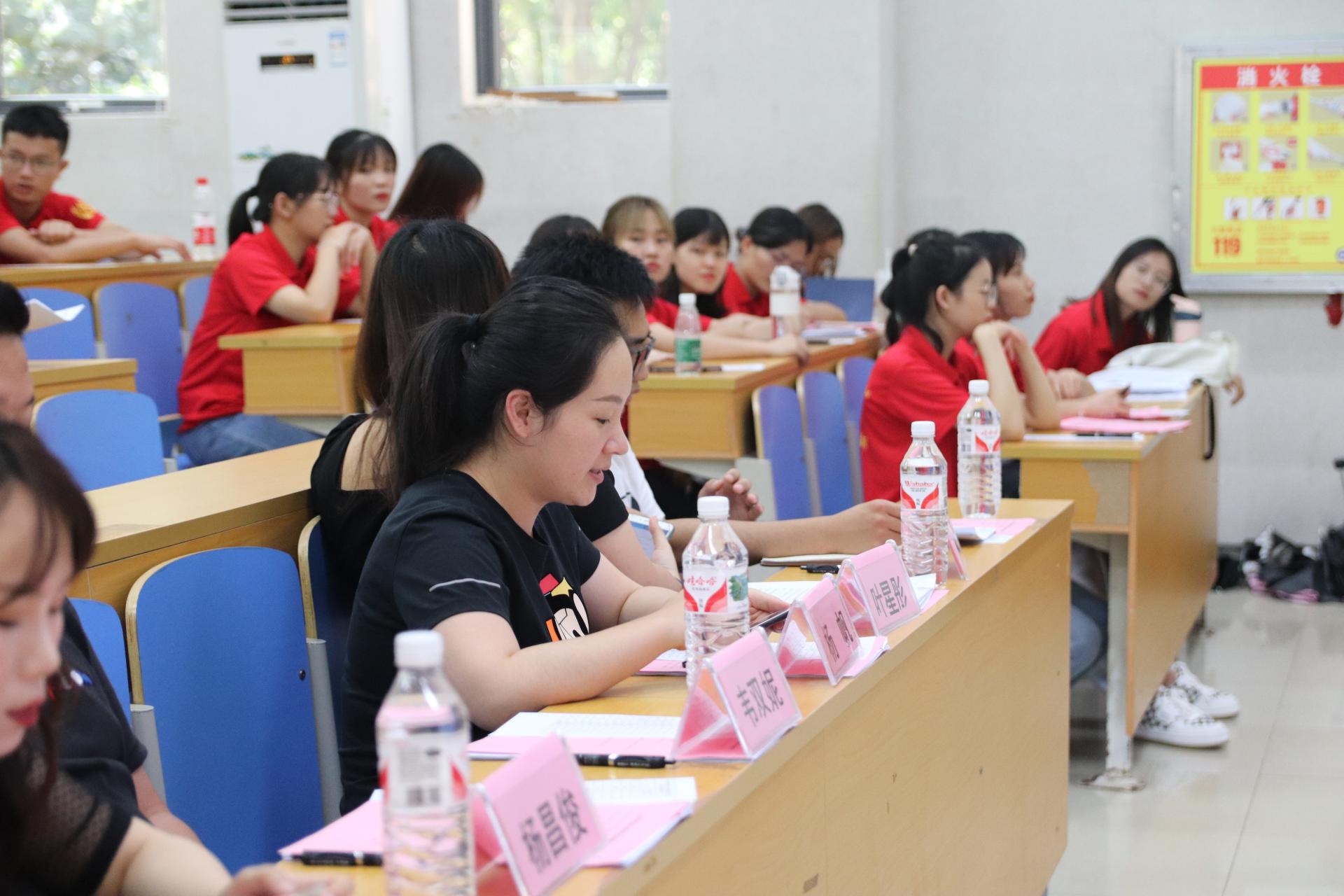 6月7日下午,信息工程学院学生党支部预备党员转正大会在敷文园C-104召开。学院学生党支部书记韦双妮老师,辅导员杨帆、杨昌俊、叶星彤、杨婧、陈家兴老师出席大会,学院学生党支部全体在校党员和预备党员参加此次会议。本次大会由谢怡雯同志主持。