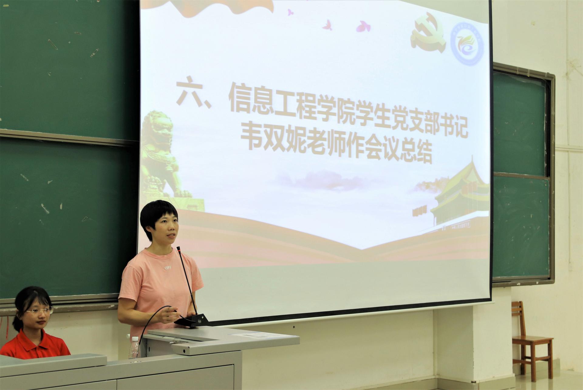 会议最后,学院学生党支部书记韦双妮老师对此次会议作总结性发言,对转正的党员给予肯定和表示祝贺。同时提出相应建议:第一,希望转正的党员同志们,在今后的生活中,继续在实践中锻炼自己,不断提高自身的思想认识;第二,希望支部同志以高标准严格要求自己,在各个方面起到表率作用。(信息工程学院学生党支部供稿  /胡润、陈家兴  图/吴宗霖 )