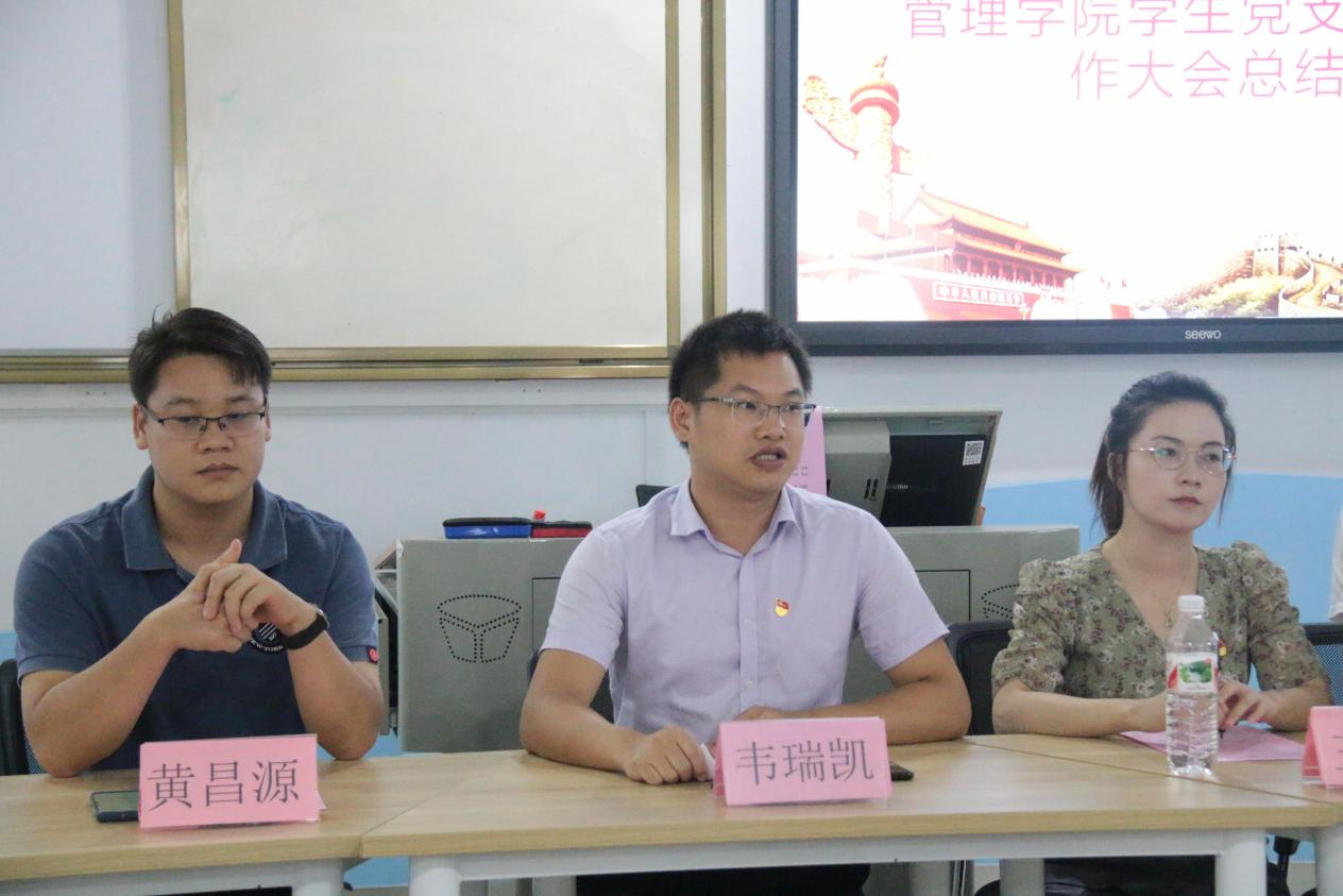 学生党支部书记韦瑞凯老师最后做了总结讲话,韦瑞凯书记对如期转正的30位预备党员表示祝贺,同时要求每位党员要不忘初心,砥砺前行,要严格按照一位党员的标准要求自己。志存高远,心怀远大理想;脚踏实地做人与做事,保持良好的党员作风在班级里、在工作岗位上发挥党员旗帜作用最后韦瑞凯老师祝愿毕业的学生党员工作顺利,在校的学生党员努力学习,争取在日后成为一名优秀的共产党员管理学院学生党支部供稿  /党浚铭   /周永娟