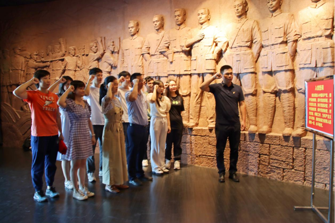 学院党总支副书记李志带领教工党员重温入党誓词。面对鲜红的党旗,他们举起右拳,郑重宣誓,铮铮誓言回荡在馆内。通过重温入党誓词,全体教工党员再次增强作为一名共产党员的责任感和使命感,牢记自己的庄严承诺,不忘初心使命,坚定立德树人之根本,努力为党和国家培养和造就一批可靠的社会主义建设者和接班人。