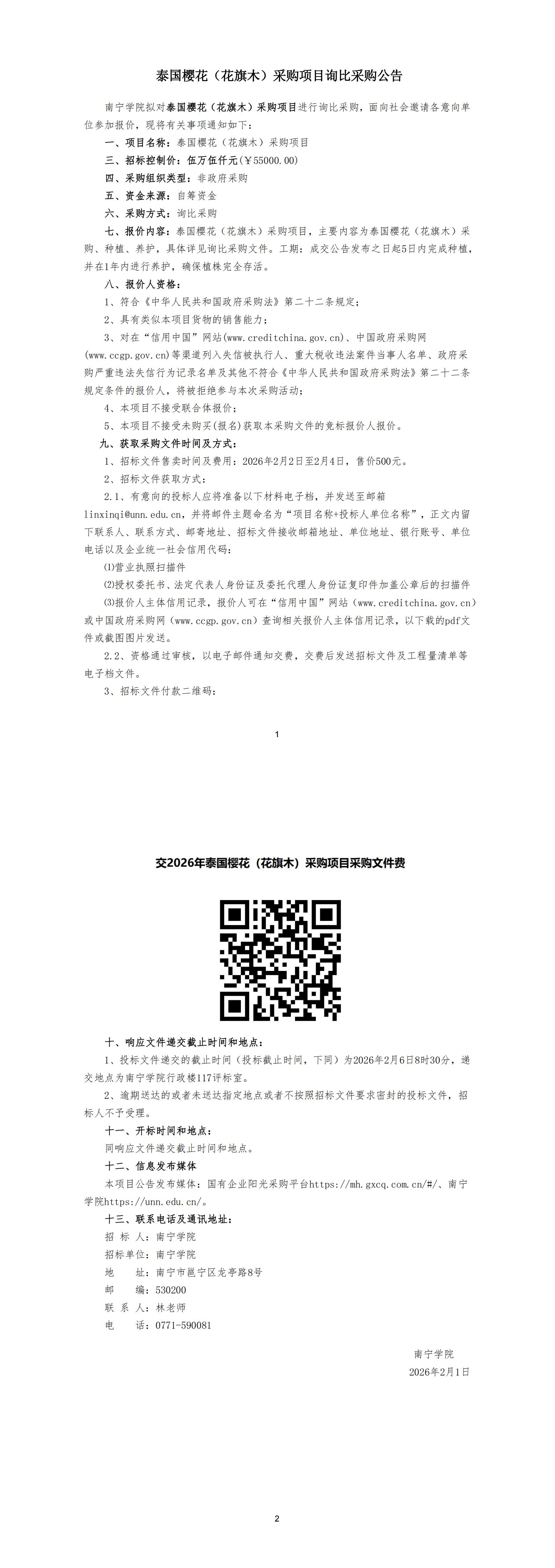 泰国樱花(花旗木)采购项目询比采购公告
