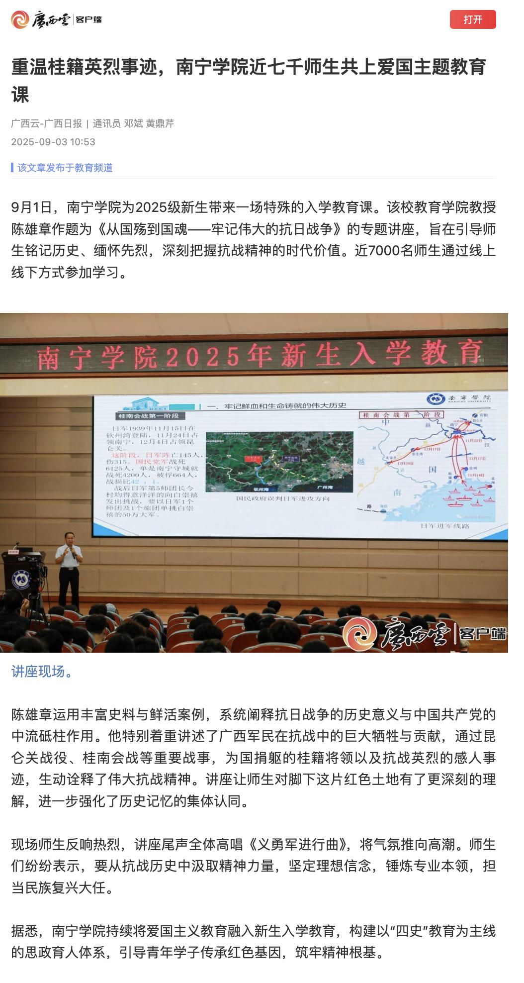 1. 广西日报:重温桂籍英烈事迹,南宁学院近七千师生共上爱国主题教育课