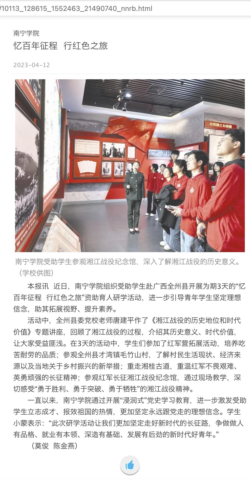 【媒体看南院】南宁日报报道南宁学院忆百年征程 行红色之旅