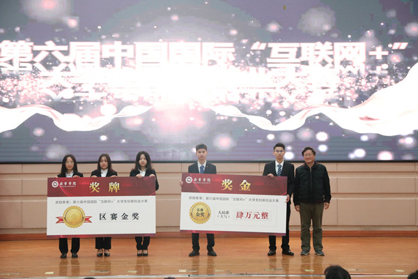 刘彪书记为获得第六届中国国际“互联网+”大学生创新创业大赛全国银奖的项目颁奖