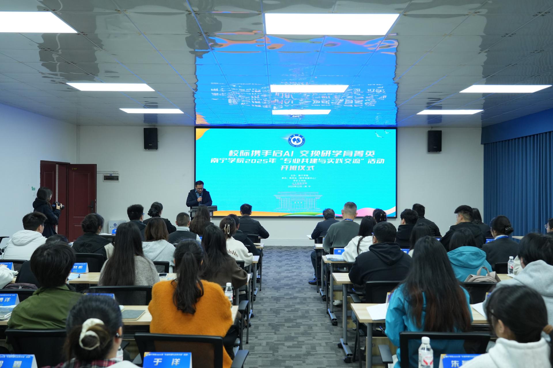 12月16日上午,南宁学院2025年“专业共建与实践交流”活动开班仪式在活动中心202室顺利举行。此次活动由南宁学院主办,教务处(教师发展中心)、学工处、人工智能学院联合承办,旨在通过跨校合作深化专业建设与产教融合创新。重庆人文科技学院领导、教师代表及30名交换生,与南宁学院副校长王宁章、相关职能部门负责人、人工智能学院、华为数字技术产业学院领导及教师代表共同出席仪式,共话协同育人新路径。