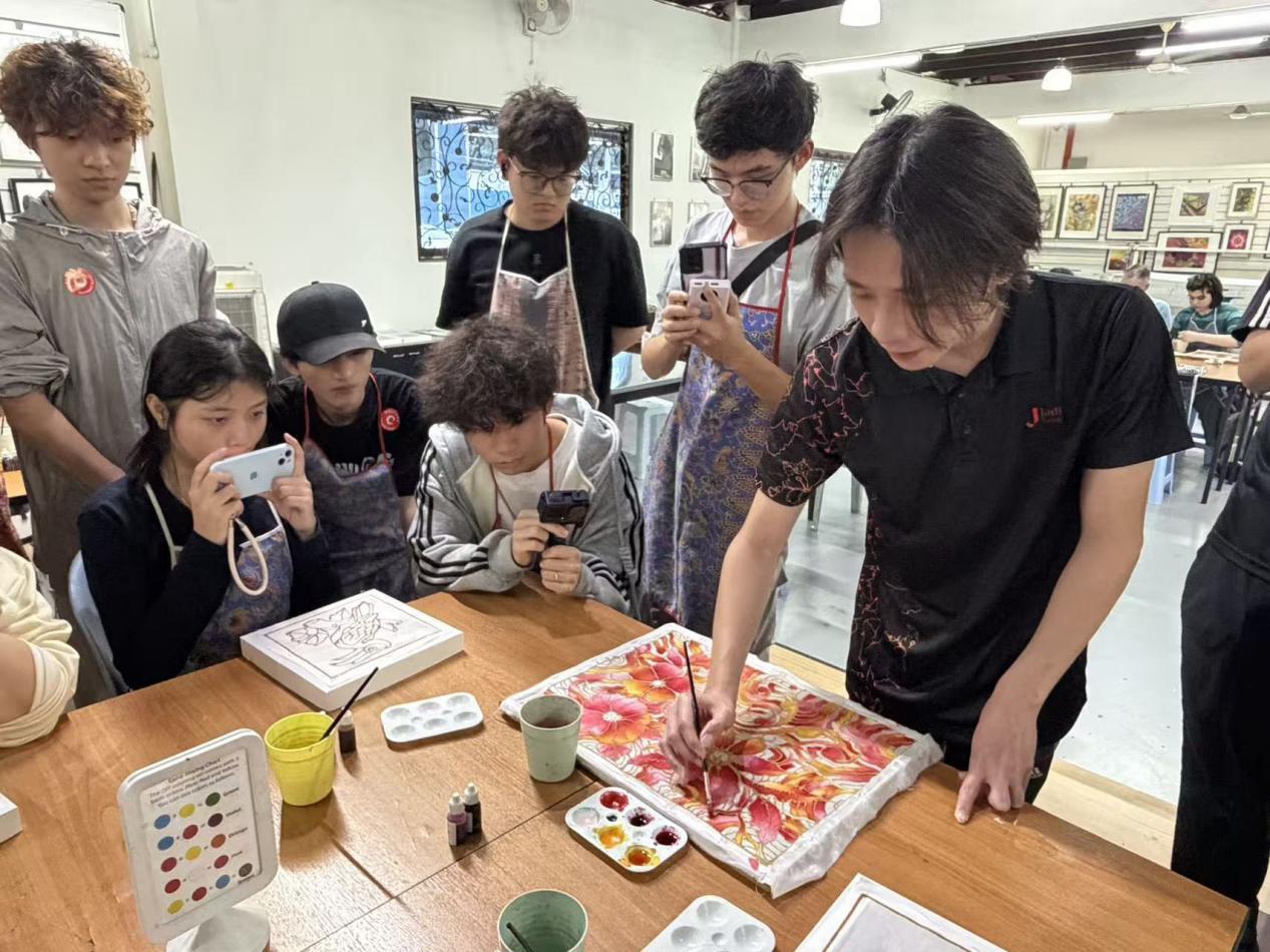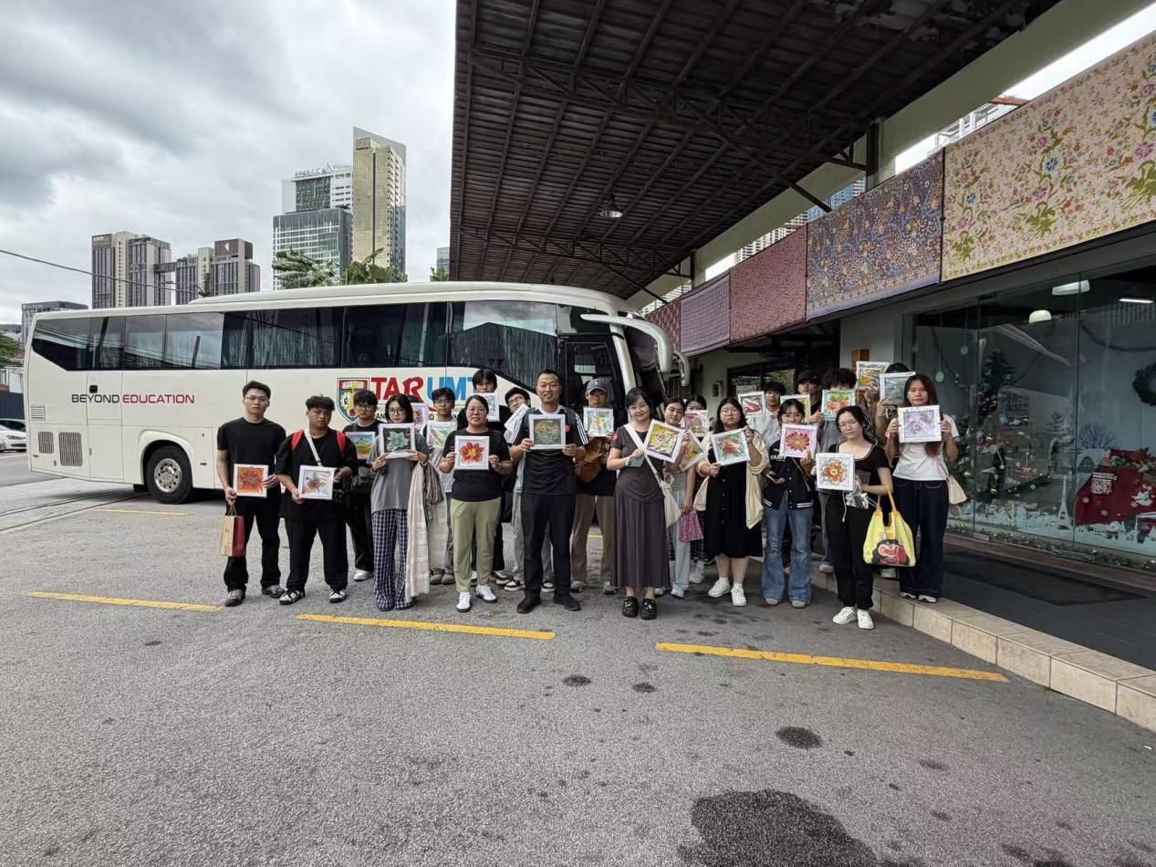 在为期七天的研学活动过程中,22名学生参与了多个工作坊和文化交流活动、马六甲文化参访,深入了解了马来西亚的历史、文化以及当地的传统艺术。在马来西亚文化课程和手绘课程的参与过程中,同学们不仅亲身体验了马来西亚的民俗艺术和传统技艺,还通过与当地师生的互动,进一步加深了对东南亚文化的理解;在马六甲亲身感受到了这座世界遗产城市的多元文化交融,了解郑和七下西洋的历史背景及其对中马文化交流的重要影响,增强了对跨文化交流与理解的认识。