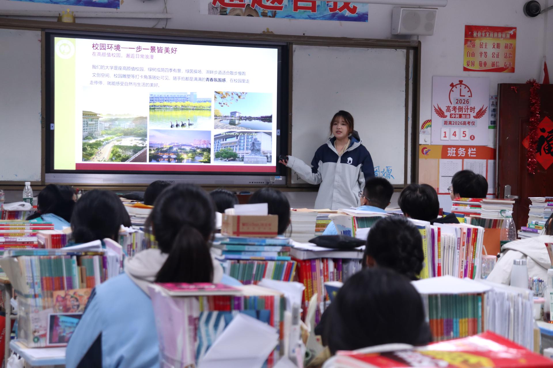 此次寒假招生宣讲活动,既是学院拓宽招生渠道、扩大办学影响力的重要举措,也为高中学子搭建了直面高校、了解专业的便捷桥梁,更让参与宣讲的师生在实践中收获成长。对于学院优秀学子代表而言,这既是锻炼表达能力、提升综合素养的实践契机,更是以己之力宣传学校、传递温暖的责任担当。“能回到高中校园,为学弟学妹们讲述校园故事,分享成长经验,不仅让大家更了解我们学校和学院,也让我更坚定了自身的学业规划,倍感意义非凡。”学子代表程垚文说道。