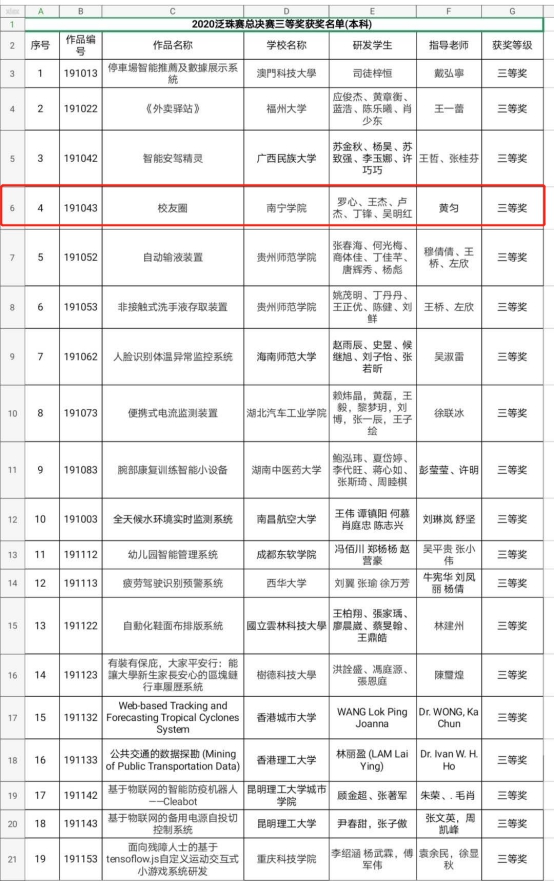 【喜讯】南宁学院学子在2020泛珠三角+大学生计算机作品赛中再创佳绩