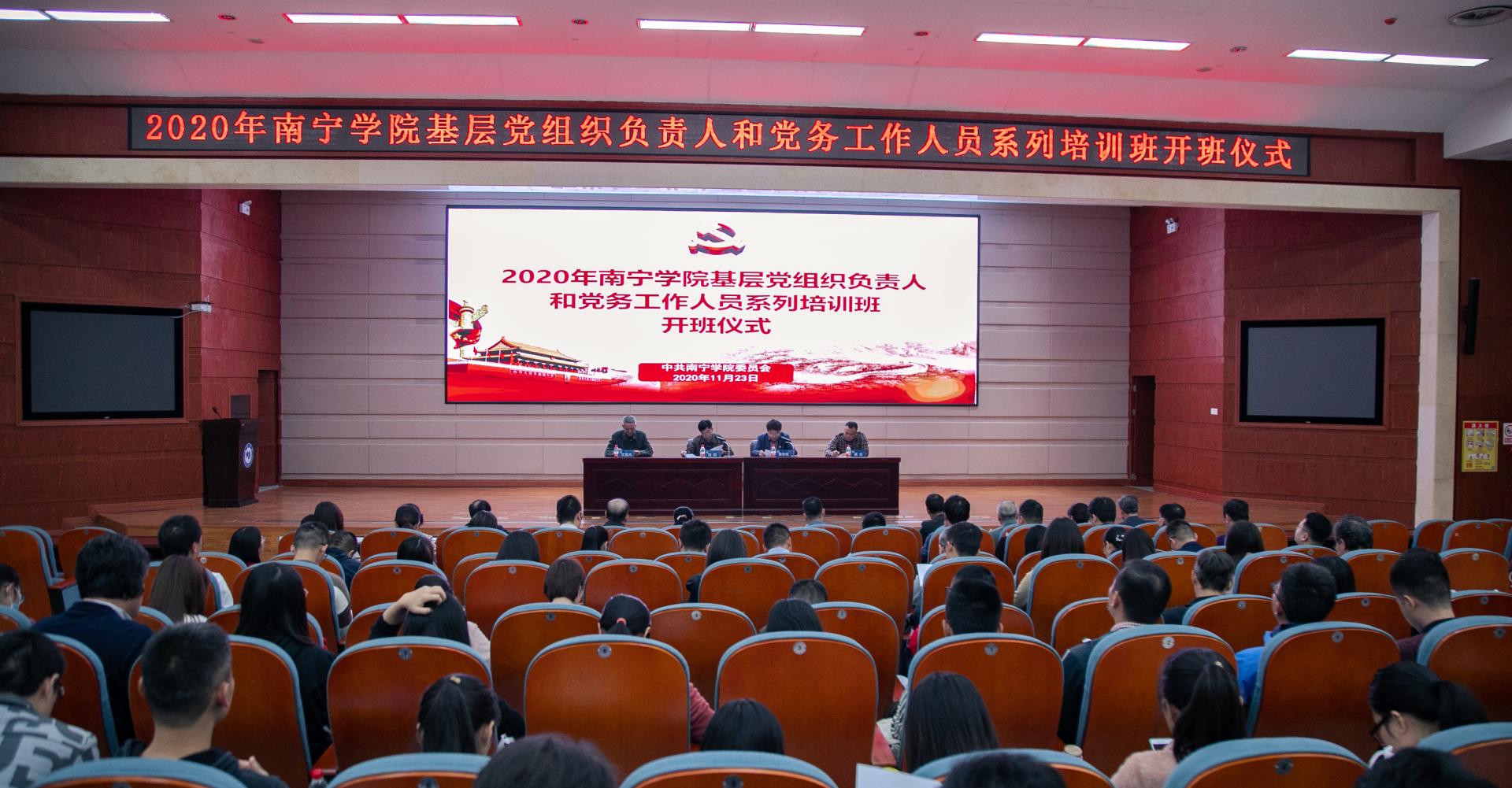 11月23日下午,2020年南宁学院基层党组织负责人和党务工作人员系列培训班开班仪式在图书馆报告厅举行。学校党委书记刘彪,党委委员、基层党组织负责人、全体学员参加了开班仪式。开班仪式由校党委副书记、纪委书记覃存民主持。
