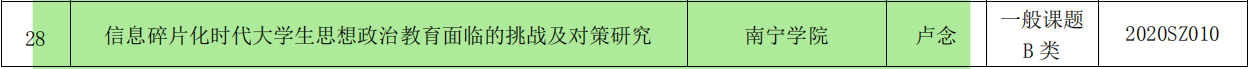 【喜讯】南宁学院教师获得5项2020年广西高校大学生思想政治教育理论与实践研究课题立项