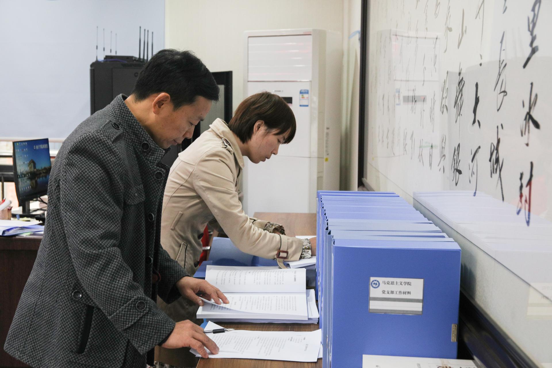 检查组认真查阅工作台账