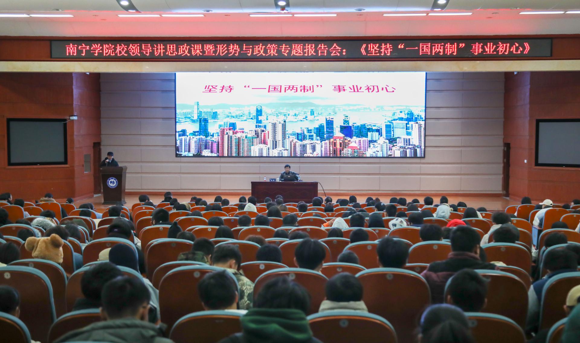 为进一步贯彻落实中办国办《关于深化新时代学校思想政治理论课改革创新的若干意见》等文件和习近平总书记在学校思想政治理论课教师座谈会上重要讲话精神,学校党委积极落实领导干部上讲台讲授思想政治理论课制度,激励学生树牢理想信念、勇担时代大任。12月18日下午,校党委书记刘彪同志在图书馆学术报告厅为500余名学生讲授《形势与政策》课——“坚持‘一国两制’事业初心”。