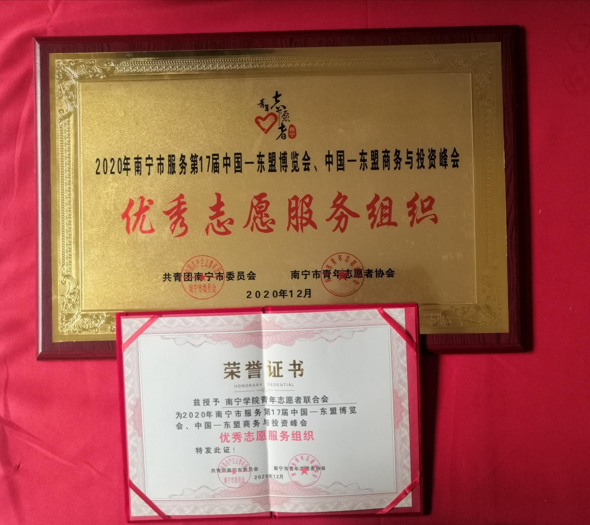 志愿服务,青春风采——南宁学院青年志愿者联合会荣获南宁市服务第17届中国-东盟“两会”“优秀志愿服务组织”称号