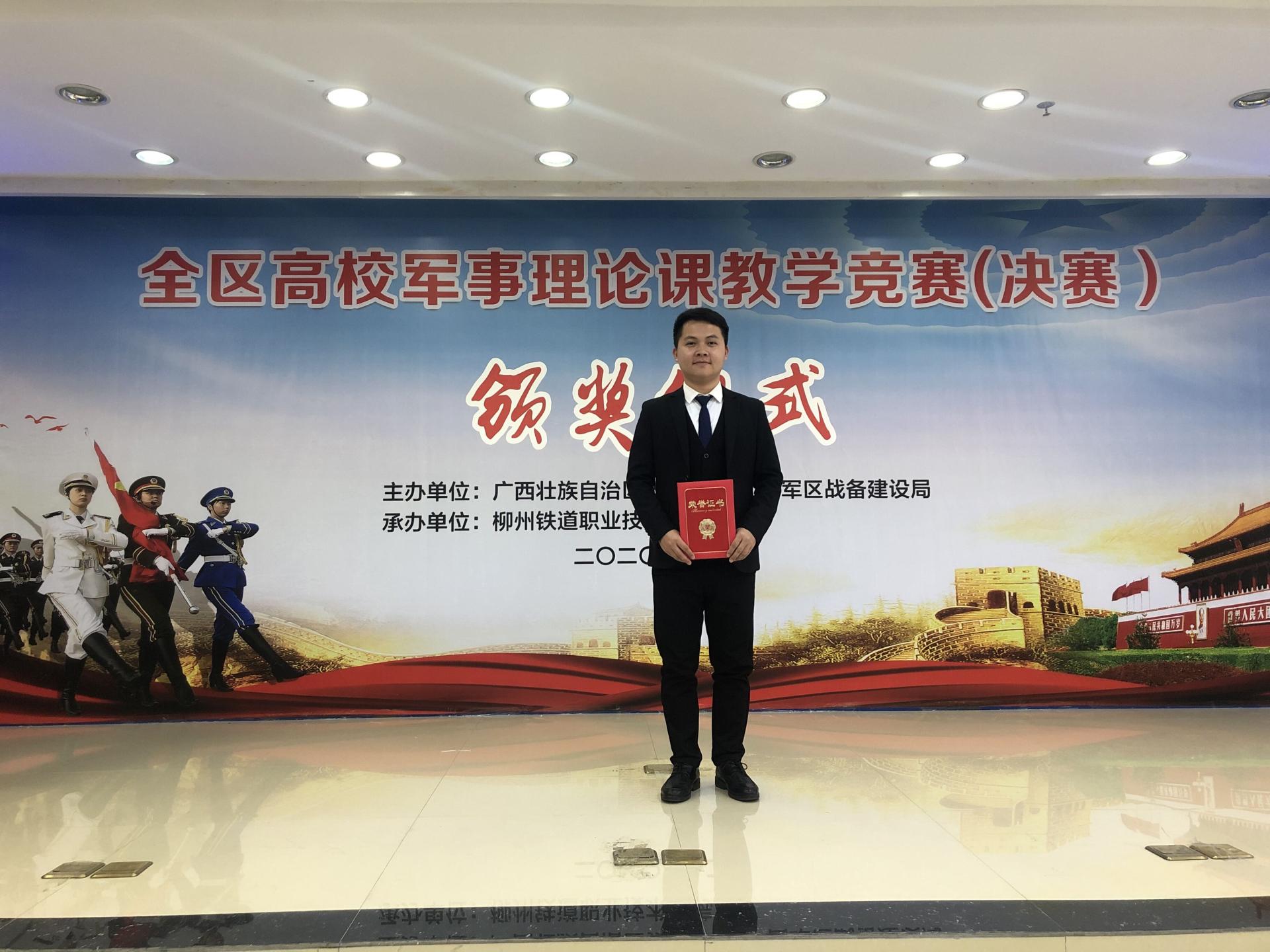 自治区教育厅、广西军区战备建设局联合举办的全区高校军事理论课教学竞赛近日落下帷幕,学校黎广源老师经过激烈角逐,最终荣获一等奖。