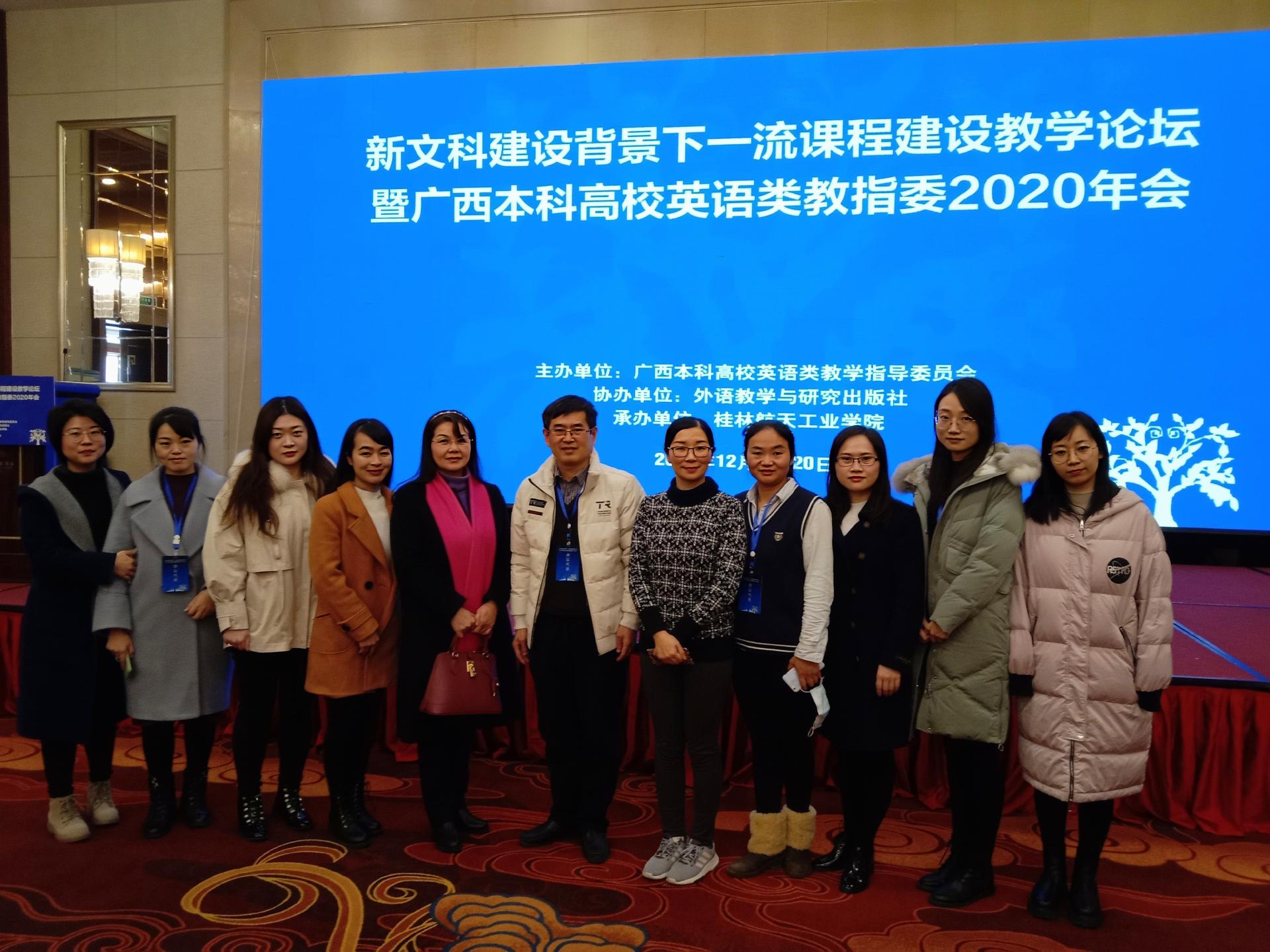 1218-19日,由广西本科高校英语类教学指导委员会主办的“新文科建设背景下一流课程建设教学论坛暨广西本科高校英语类教指委2020年会”在桂林召开,学校通识教育学院大学英语教学团队11名骨干教师参加了此次论坛