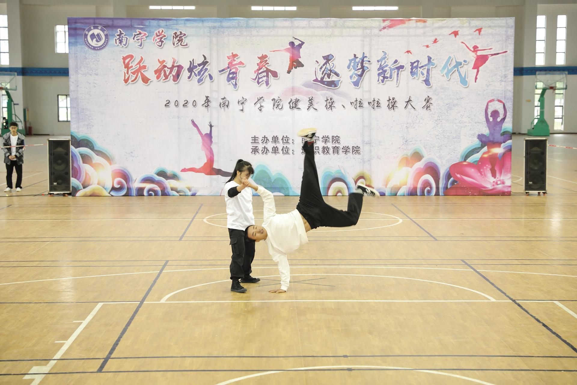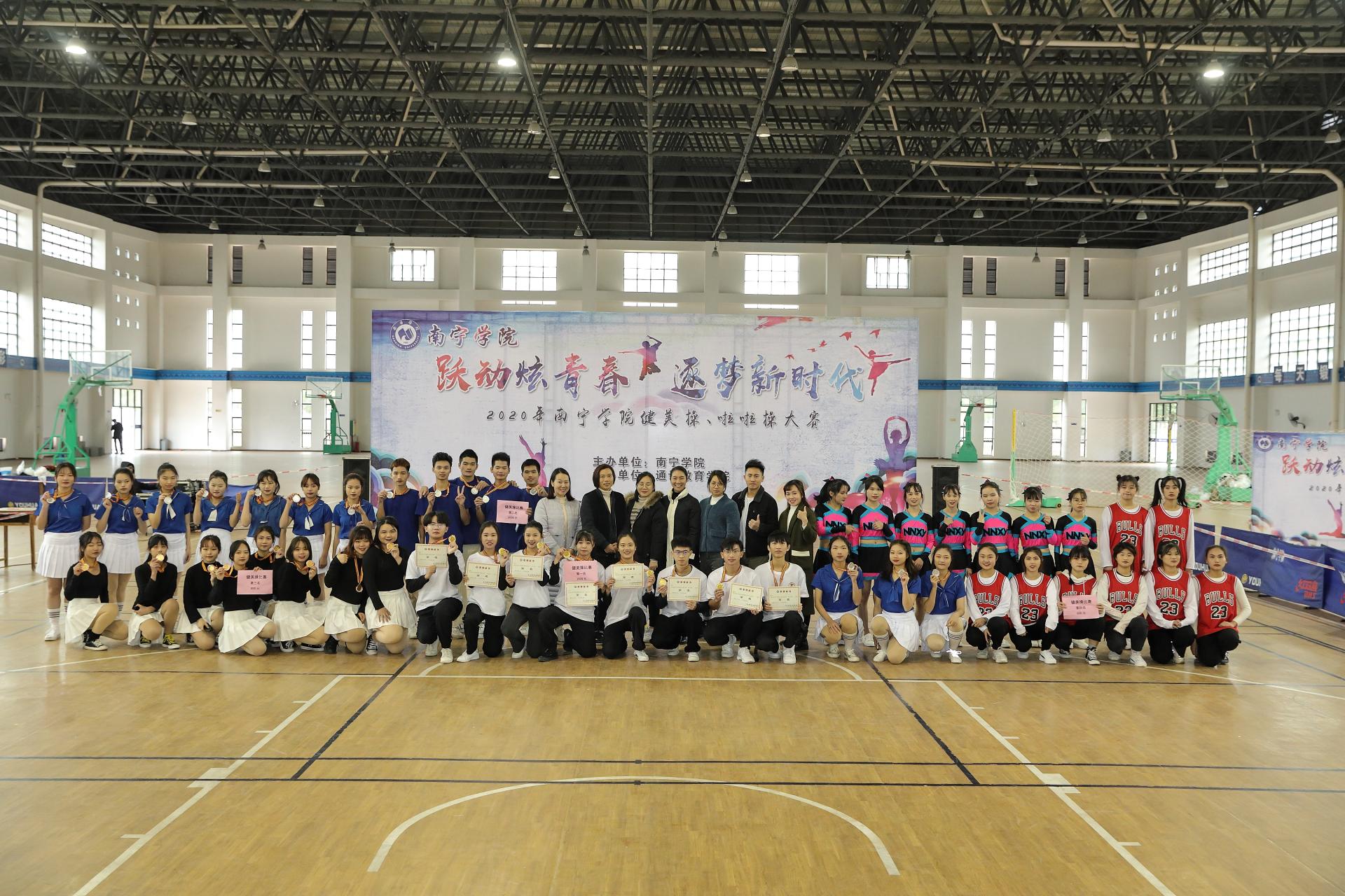 1219日,由通识教育学院举办的南宁学院2020年健美操、啦啦操大赛在训练馆火热开赛。比赛共设置健美操和啦啦操两个项目,来自八个二级学院的16支队伍参加了本次比赛。