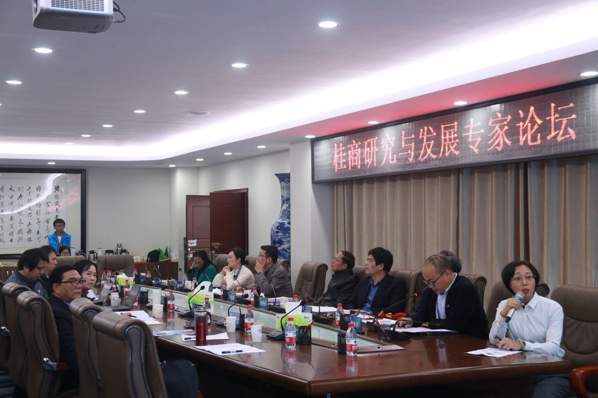 下午在行政楼322会议室同时召开了桂商研究与发展专家论坛,广西师范大学文化遗产研究中心主任、王城博物馆馆长陈洪波,广西师范大学历史文化与旅游学院教授、桂林历史文化研究院副院长李天雪,南宁学院管理学院卢品慕教授、李建伟教授、黄小燕副教授分别在会上分别作了主题报告,就广西非遗产业开发的困境与对策、桂林旅游演艺作品的景观人类学研究、上林采金人的精神、桂商文化研究简评、新媒体视域下短视频营销的创新等主题展开了交流和讨论。