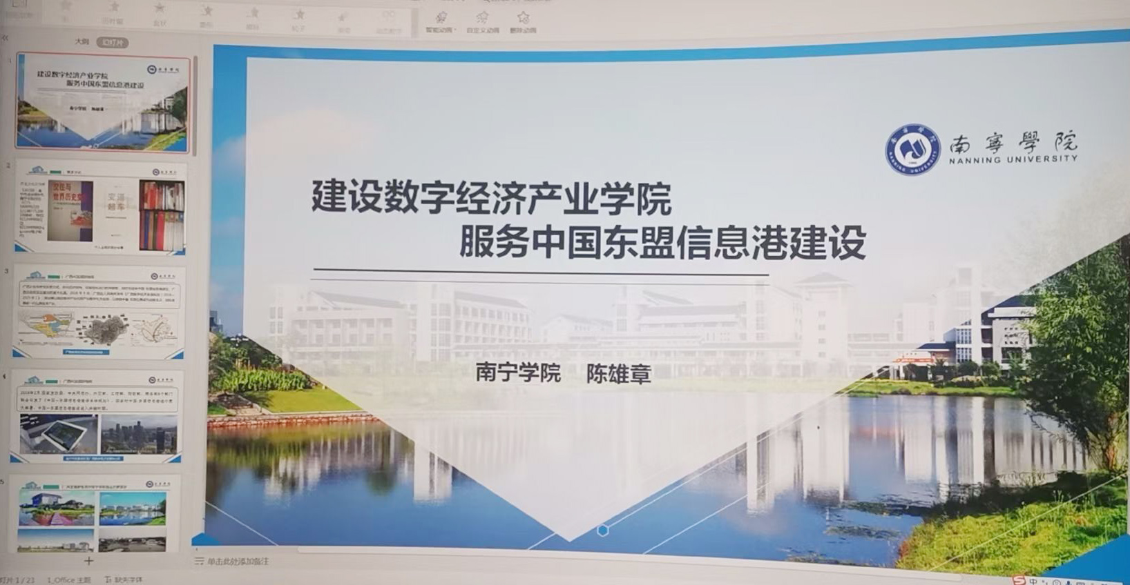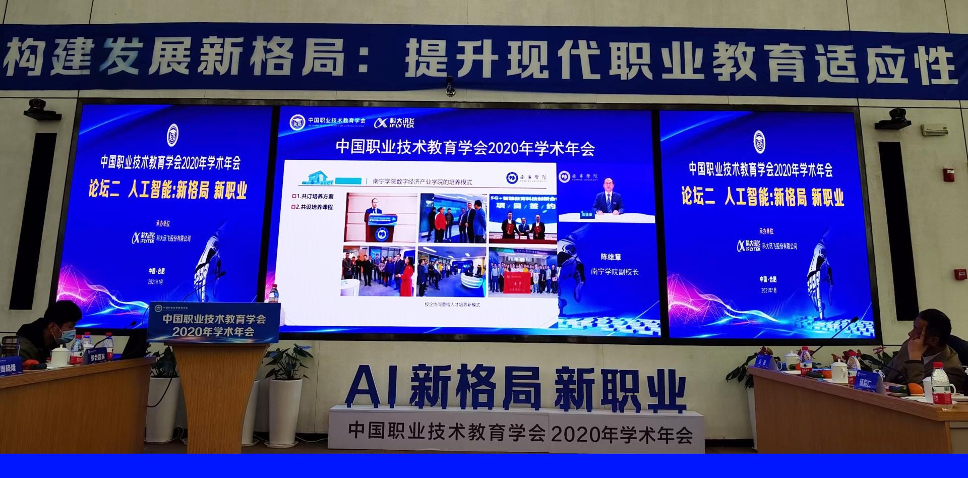 1月31日,中国职业技术教育学会(以下简称中国职教学会)2020年学术年会以线上线下相结合,线上为主的形式举办。教育部副部长孙尧,中国职教学会会长、教育部原副部长鲁昕,中国科学院和中国工程院共11位院士,教育部相关司局和直属单位、部分省教育厅、中国工业互联网研究院、中国电子学会、科大讯飞股份有限公司、三一集团有限公司、华为技术有限公司等单位的有关负责同志出席。南宁学院副校长陈雄章教授应邀在线上做《建设数字经济产业学院,服务中国东盟信息港建设》专题报告。