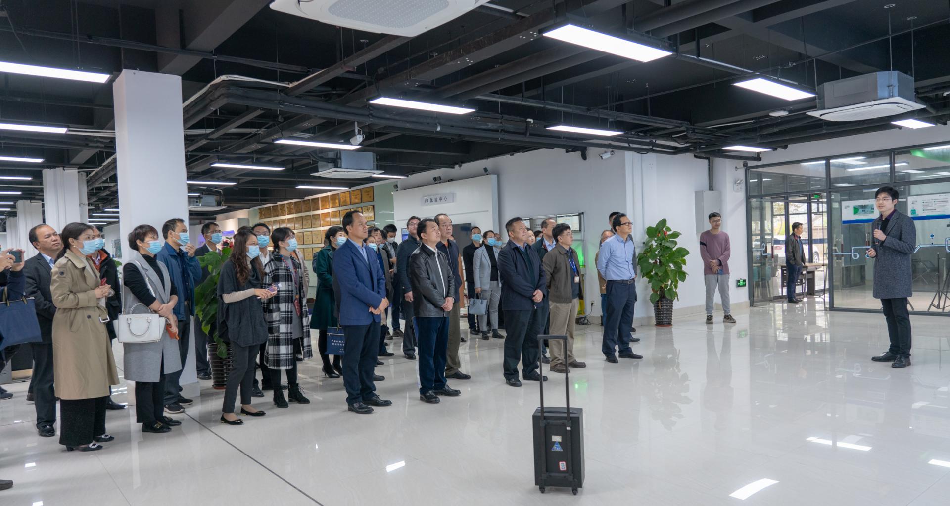 创新创业学院院长马骏向考察团介绍创新创业生态基地